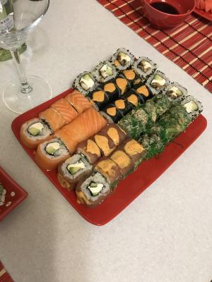 закзывали сет праздничный.ОООчень понравилось всё!очень свежие  и вкусные суши.только долго  готовили(заказов было много в сб вечером)