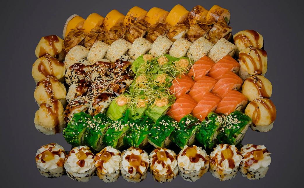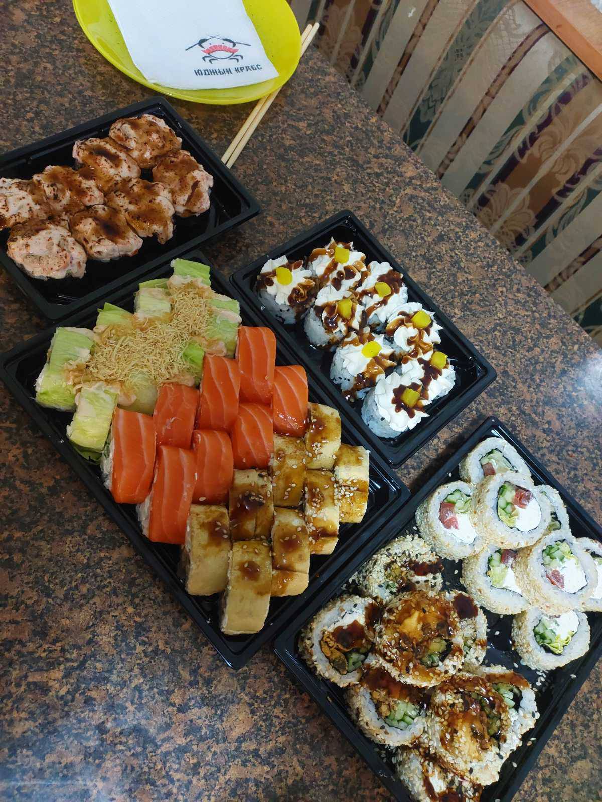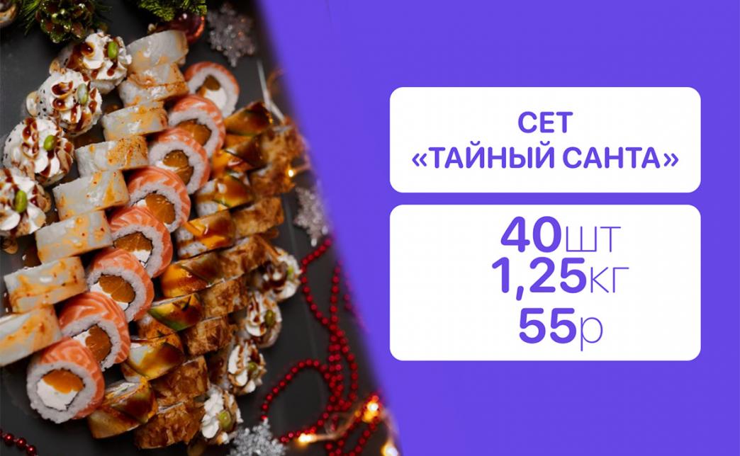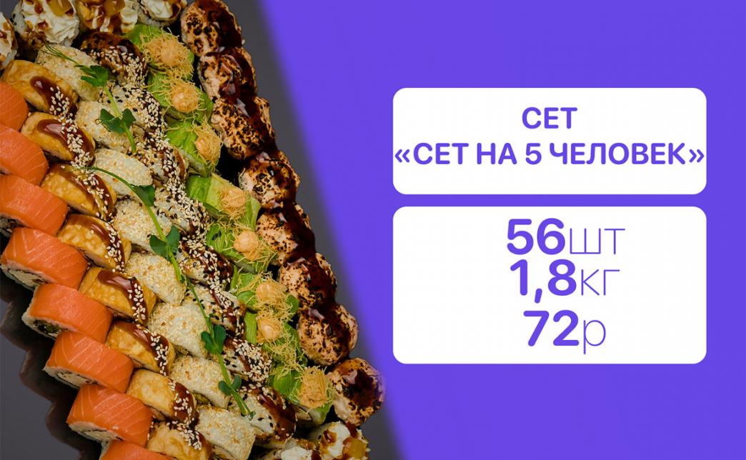 - Промокод дает право на скидку до 59% на суши-сеты от "Юджын Крабс"