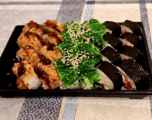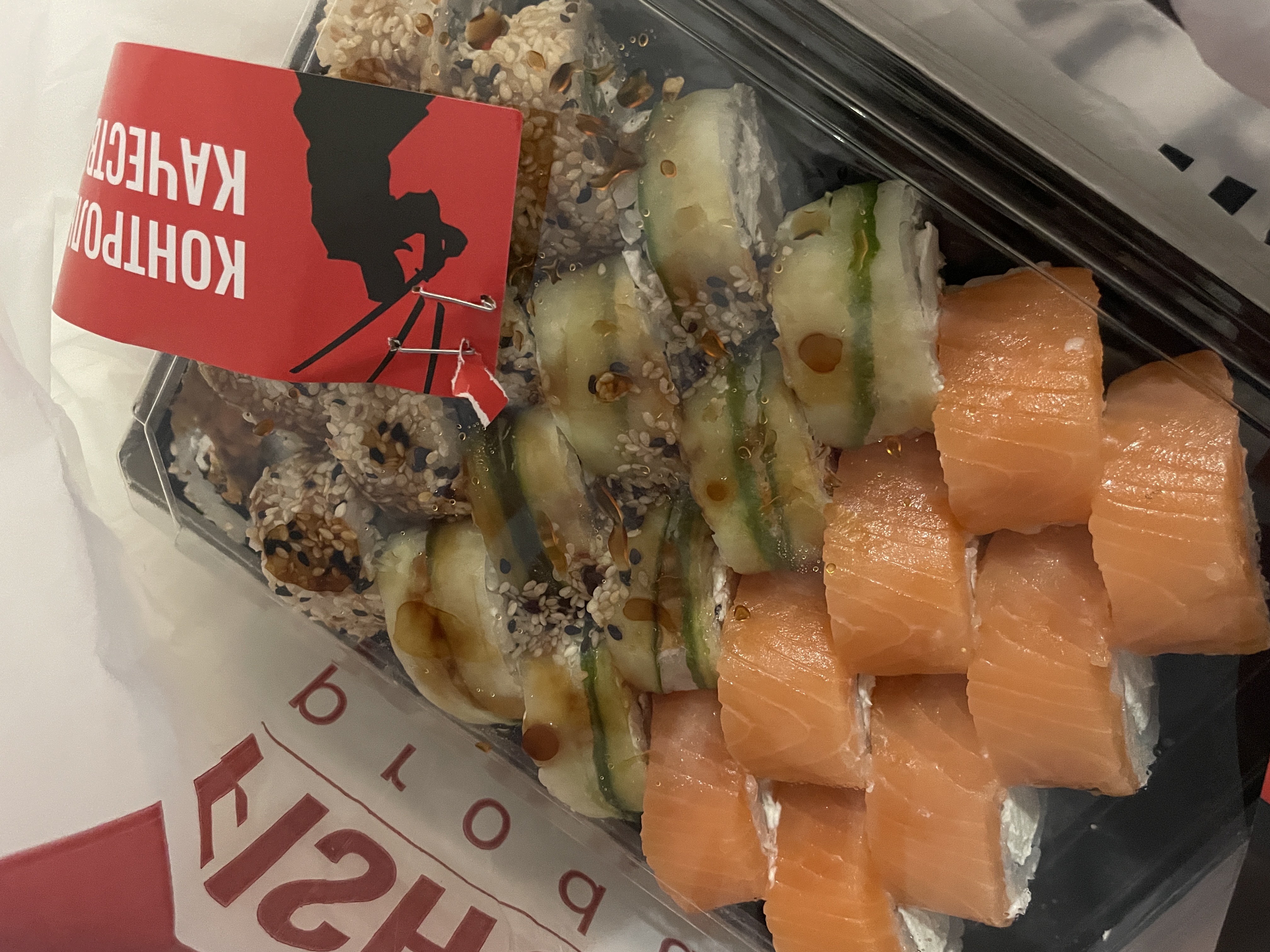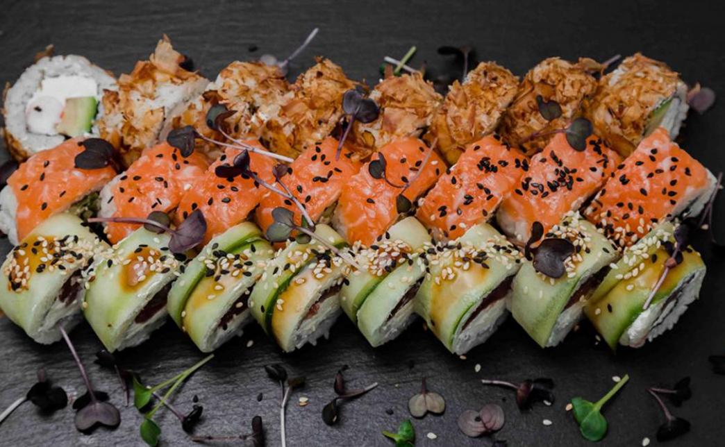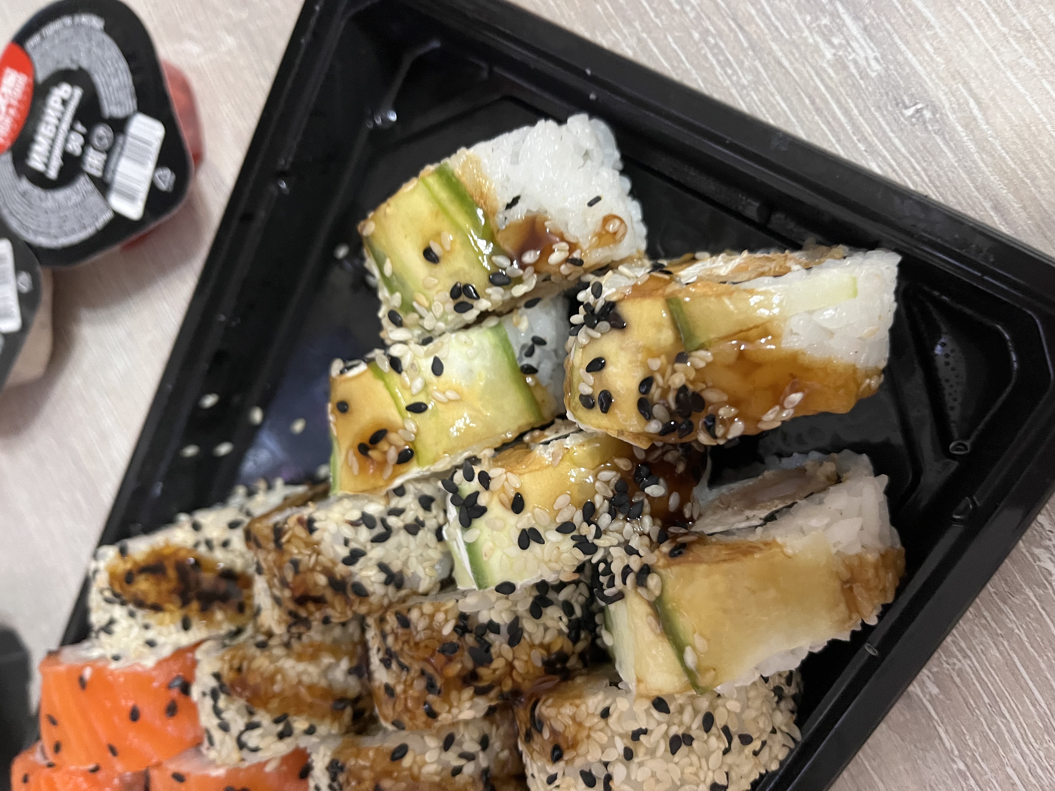 - Промокод дает право на скидку до 59% на суши-сеты от "Юджын Крабс"