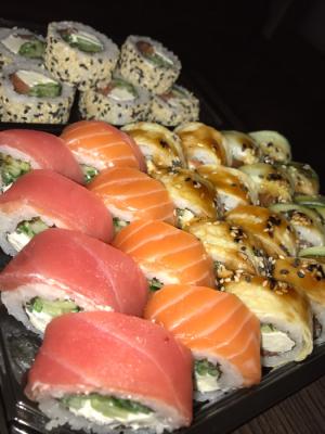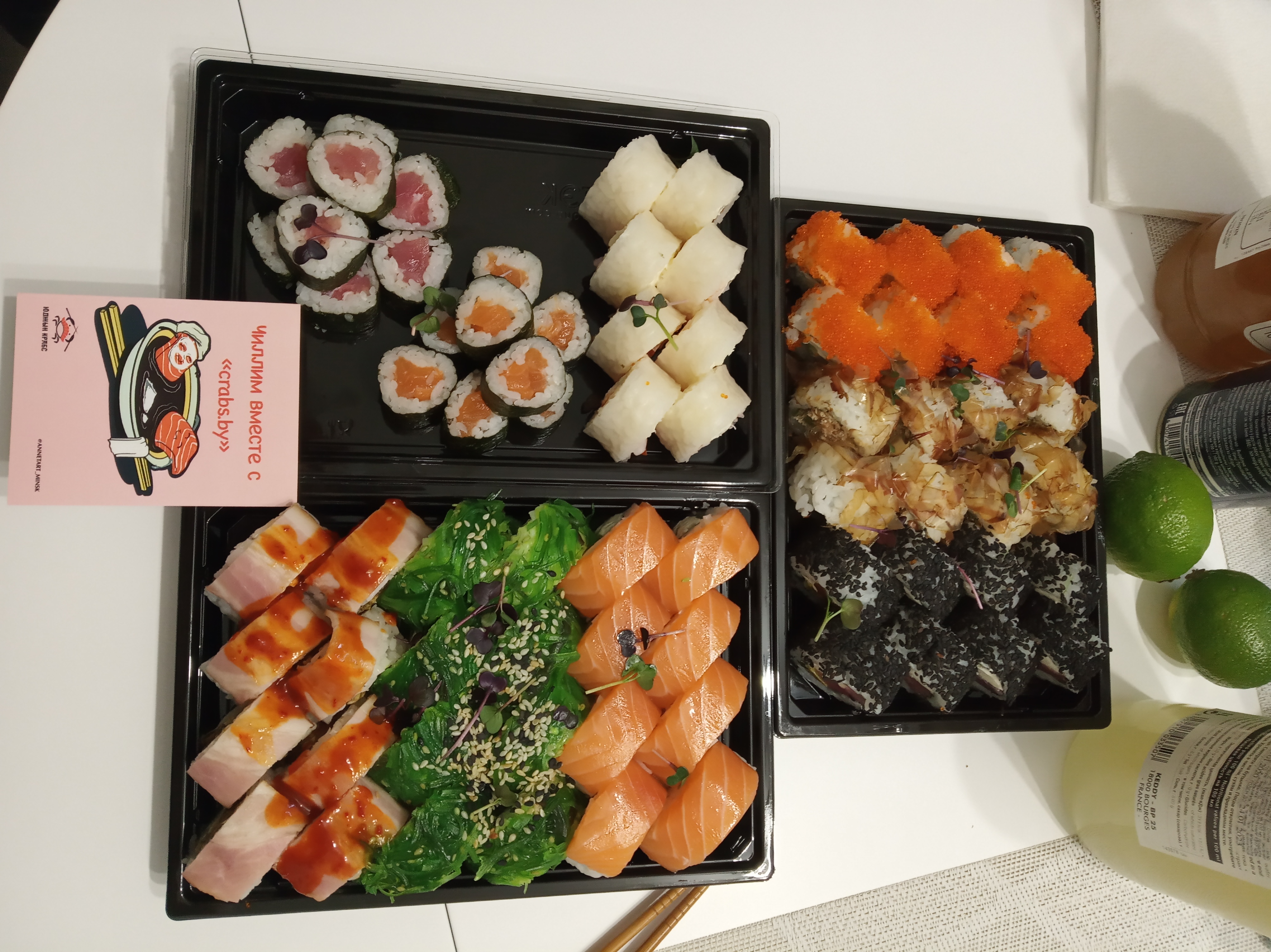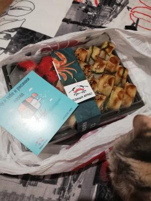 - Промокод дает право на скидку до 59% на суши-сеты от "Юджын Крабс"