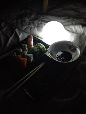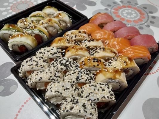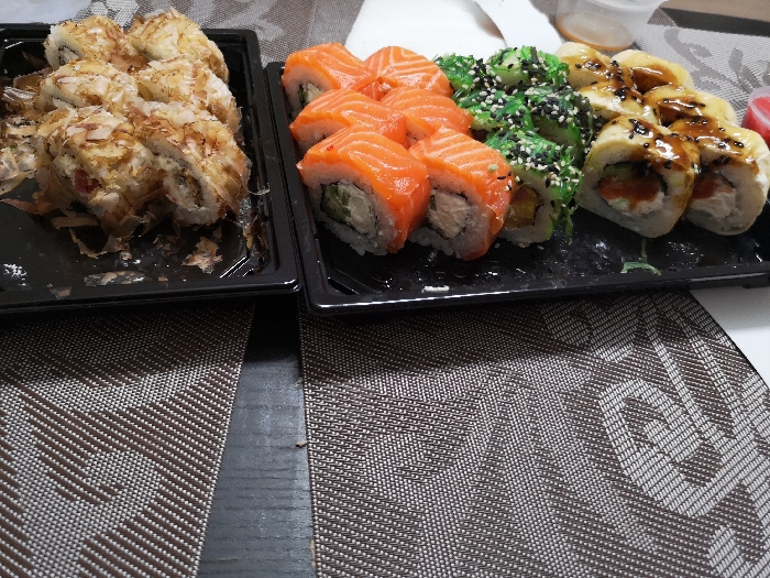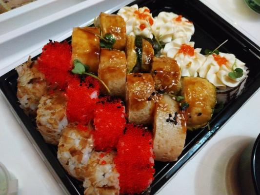 - Промокод дает право на скидку до 59% на суши-сеты от "Юджын Крабс"