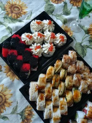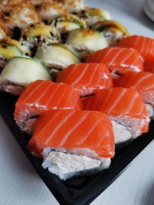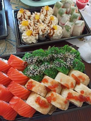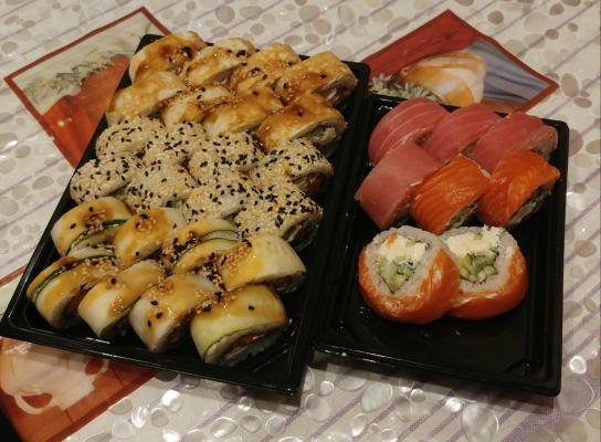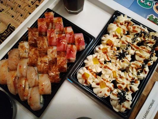 - Промокод дает право на скидку до 59% на суши-сеты от "Юджын Крабс"