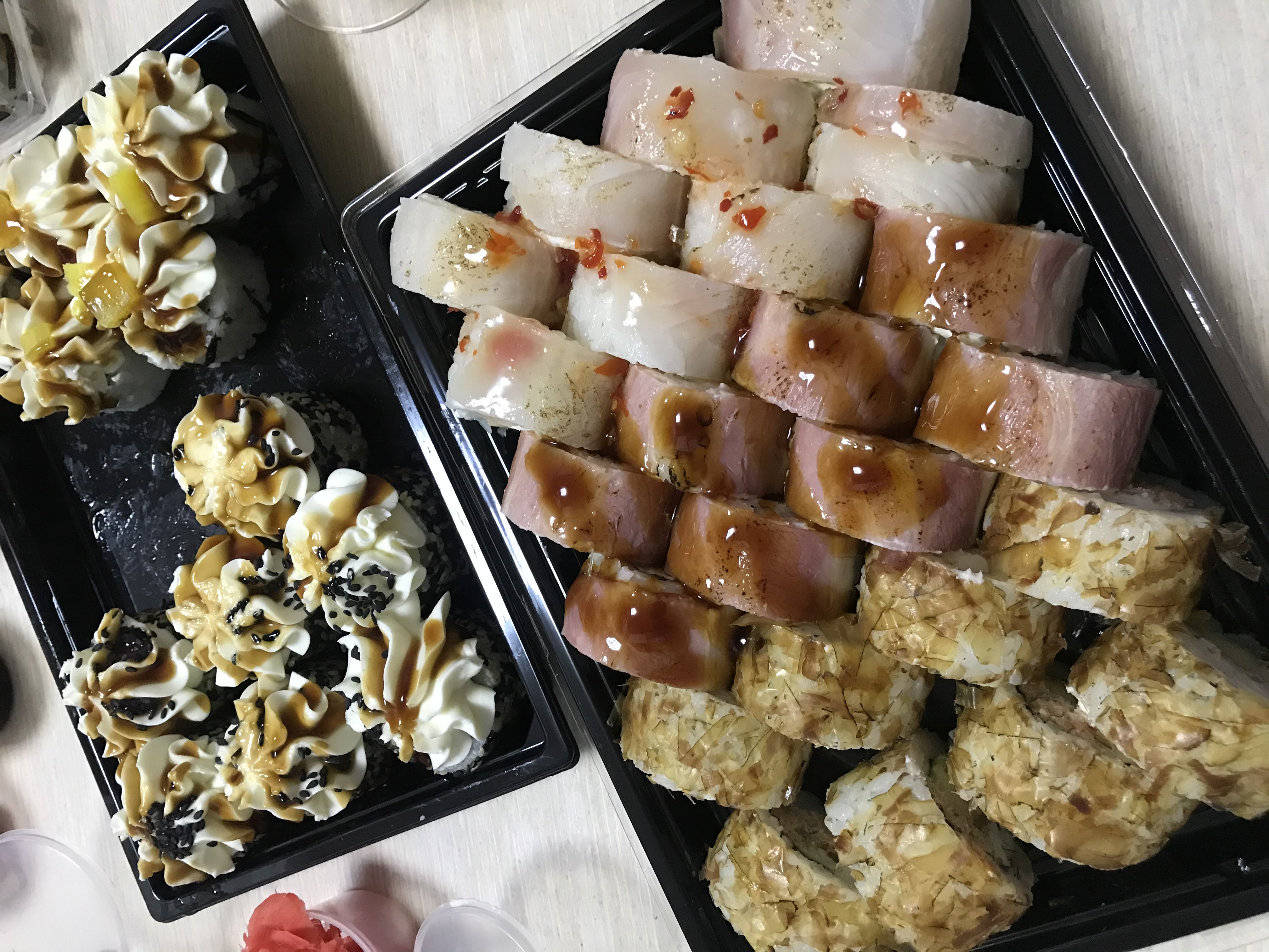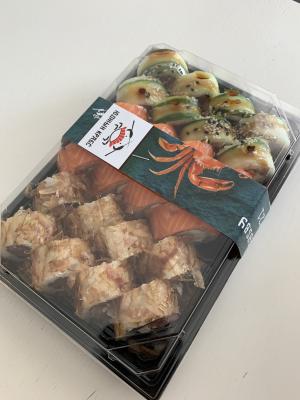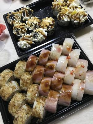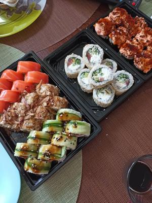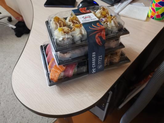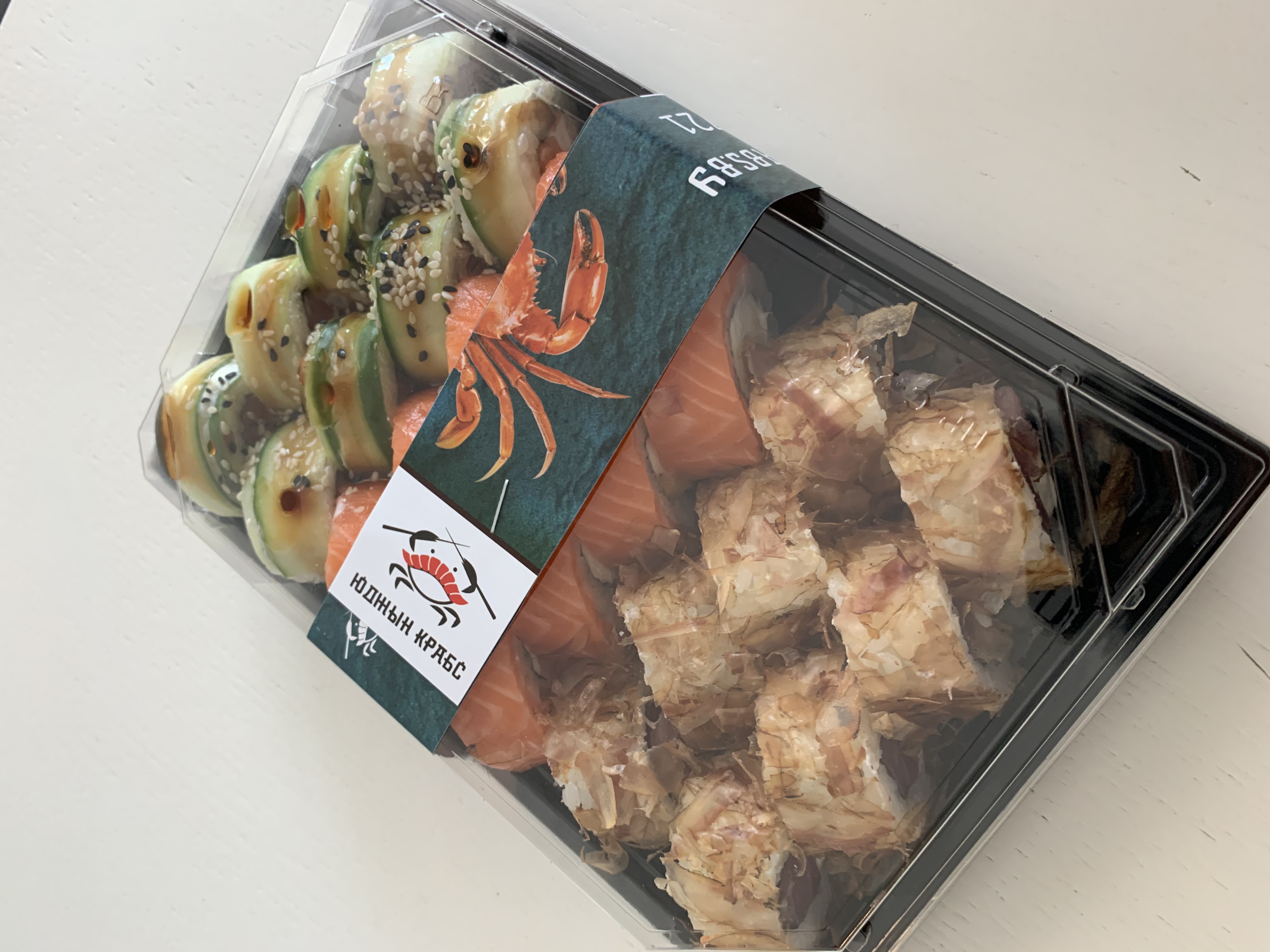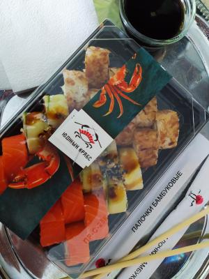 - Промокод дает право на скидку до 59% на суши-сеты от "Юджын Крабс"