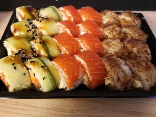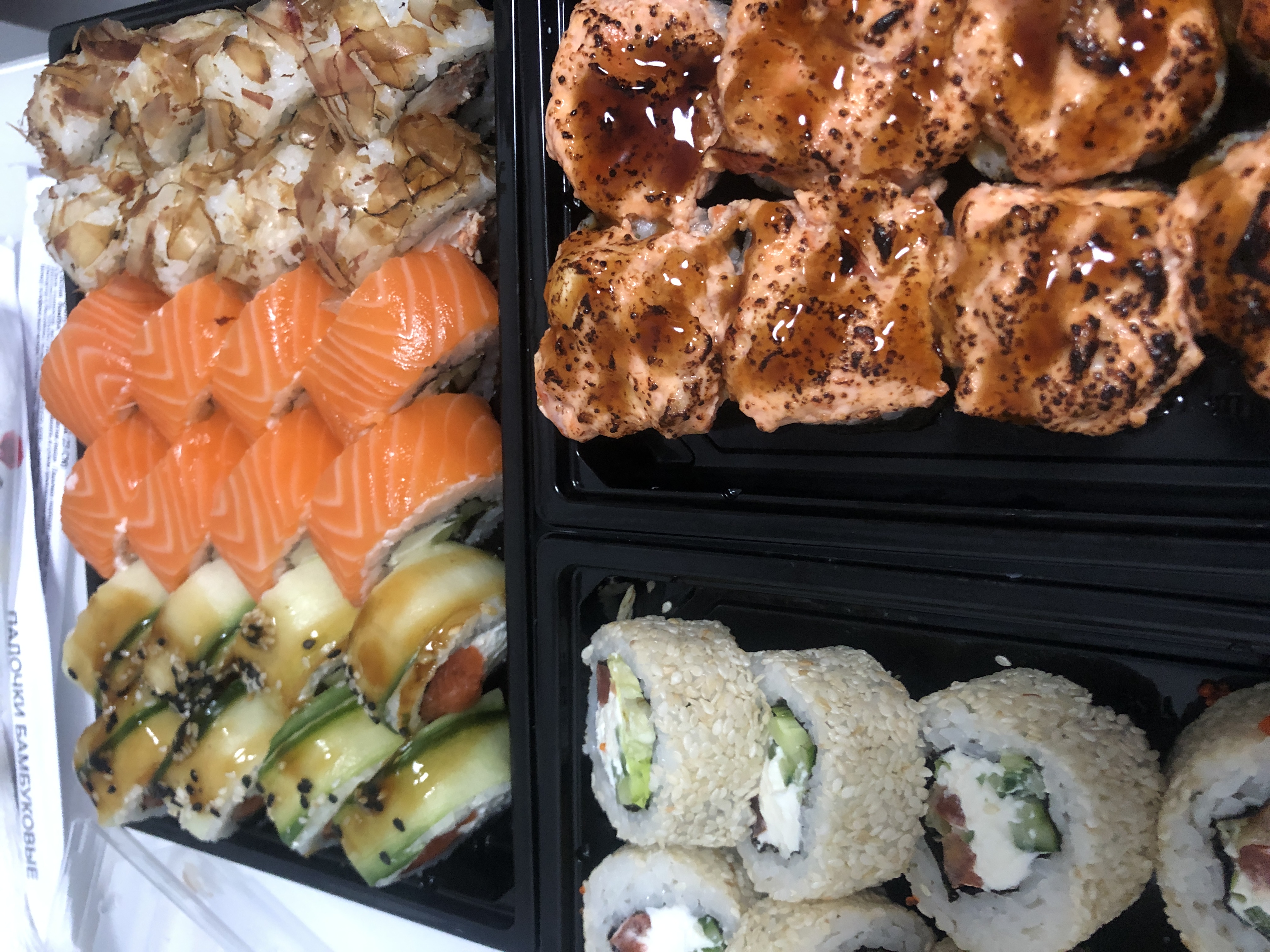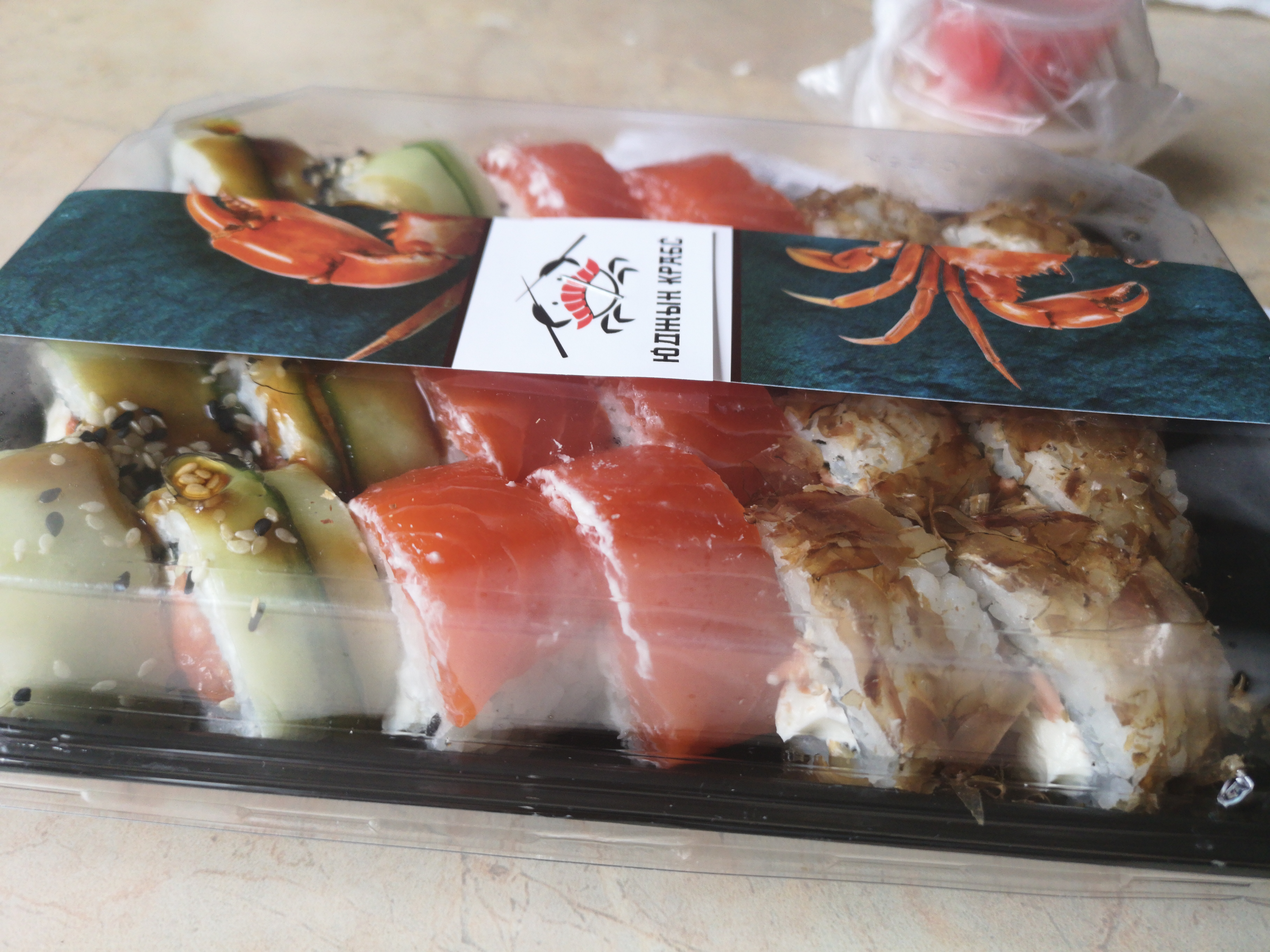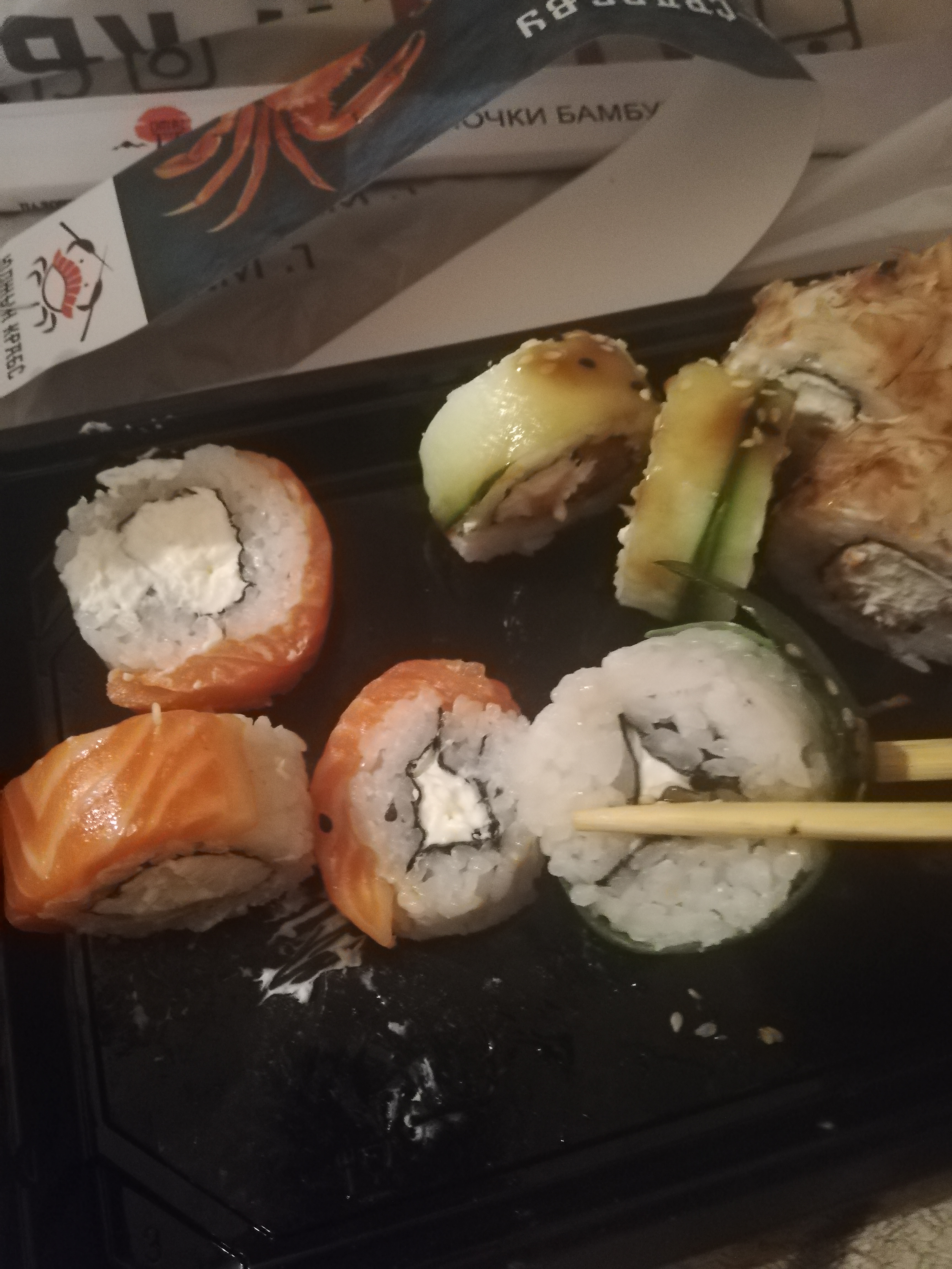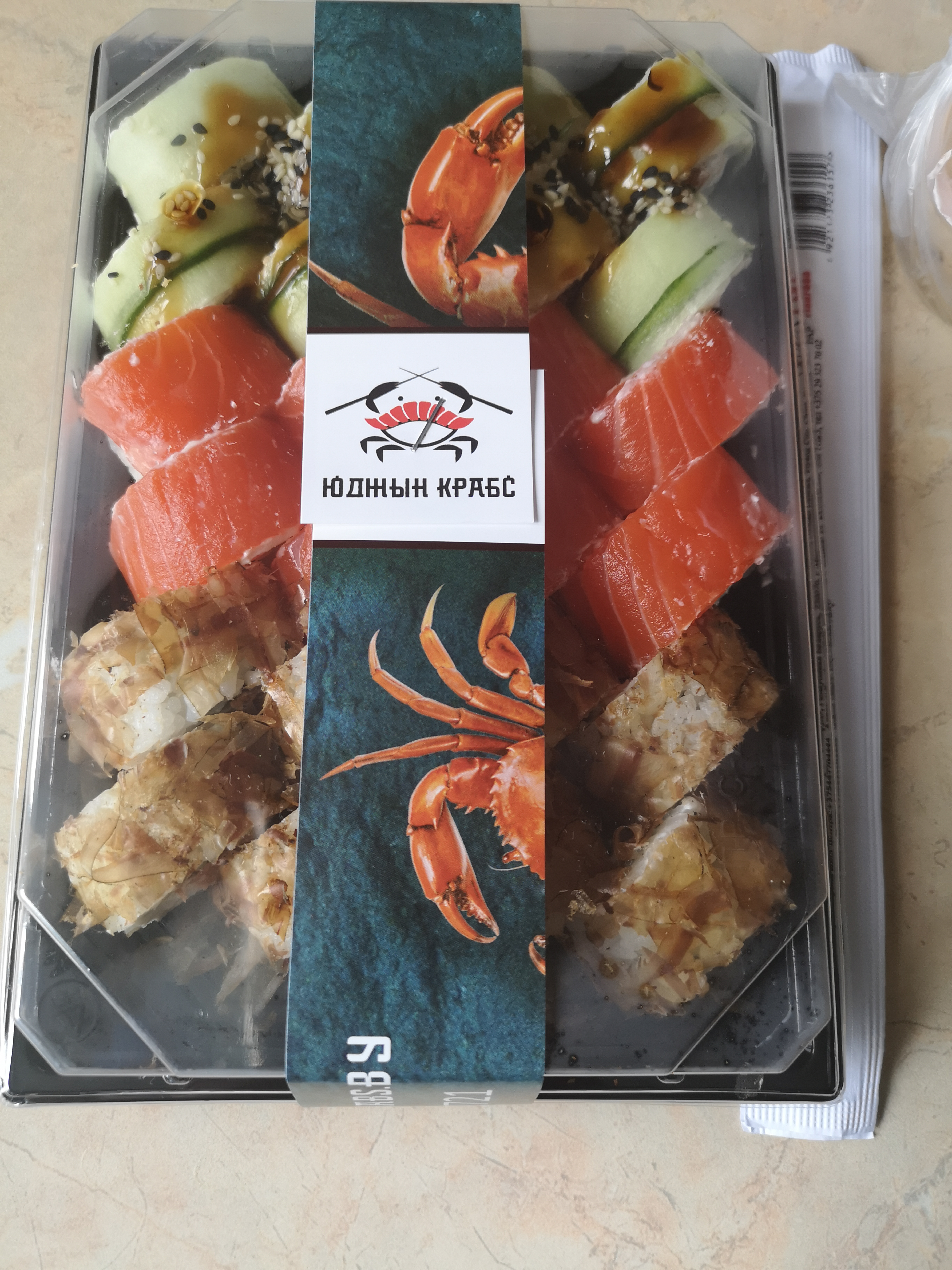 - Промокод дает право на скидку до 59% на суши-сеты от "Юджын Крабс"