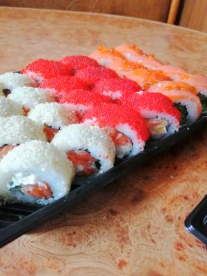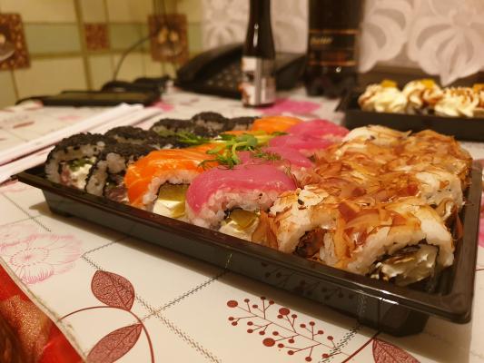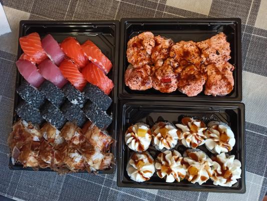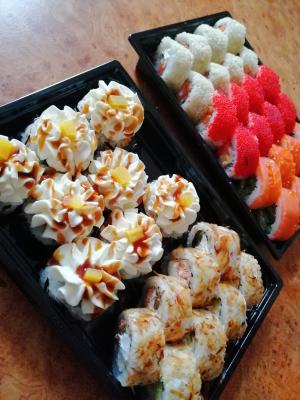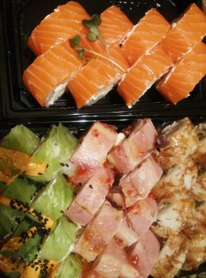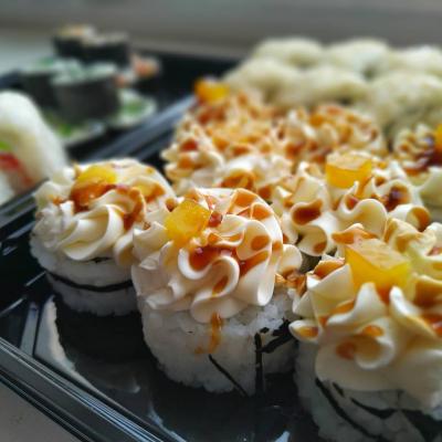 - Промокод дает право на скидку до 59% на суши-сеты от "Юджын Крабс"