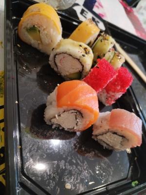 - Промокод дает право на скидку до 59% на суши-сеты от "Юджын Крабс"