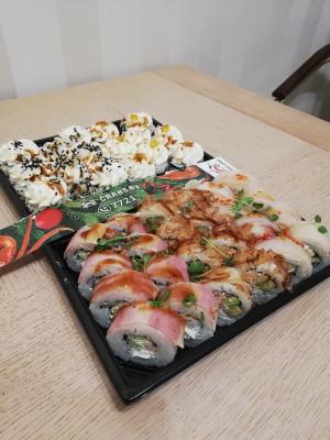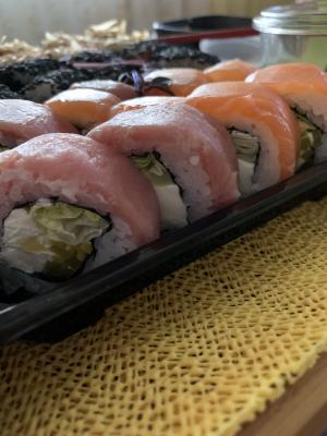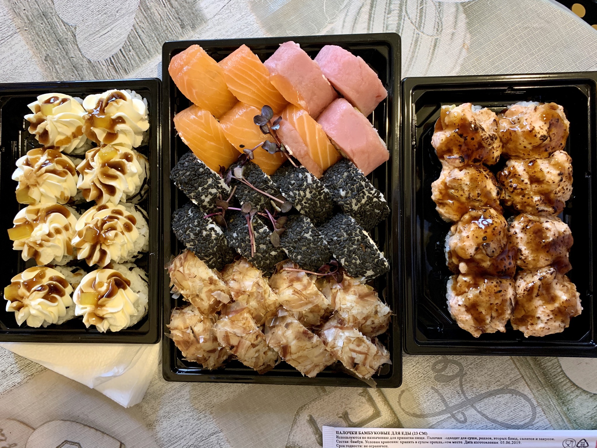 - Промокод дает право на скидку до 59% на суши-сеты от "Юджын Крабс"