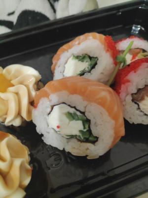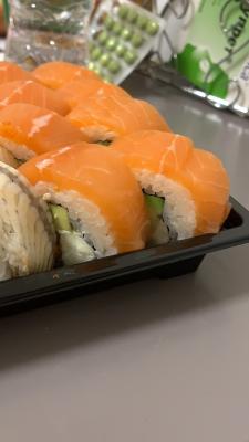 Рыбы хоть и много но это не показатель качества. Она жирная и без вкуса скорее всего разморожена. Мне не понравилось не советуюПосле этого заведения у меня на всегда отпало желание заказывать и есть суши
