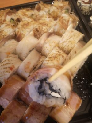 Взяли сет Терияки, опаленый окунь плохо опален и резиновый, что подпортило все настроение... остальное все вкусно.