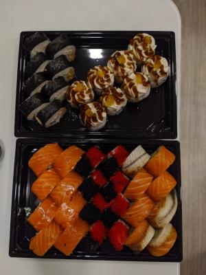 Первая доставка, которая учла просьбу привезти чуть раньше, чем в предложенное время) супер! Что касается роллов : большие, свежие, много рыбы! Рекомендую