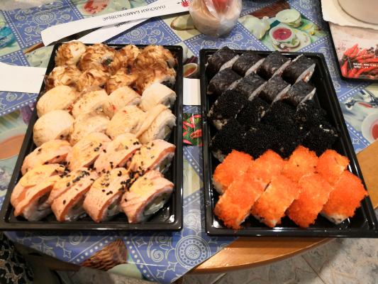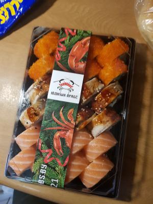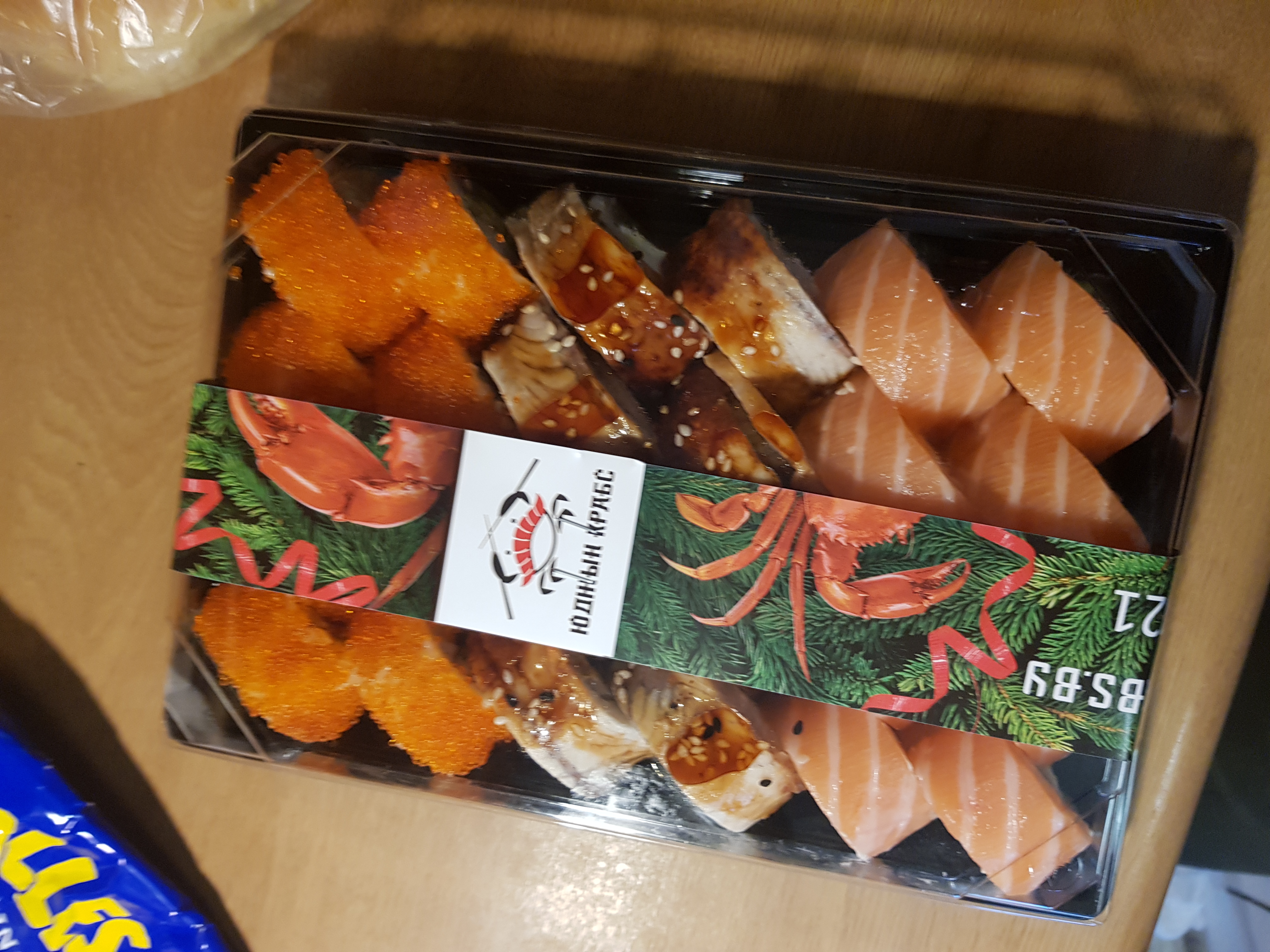 - Промокод дает право на скидку до 59% на суши-сеты от "Юджын Крабс"