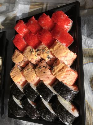 - Промокод дает право на скидку до 59% на суши-сеты от "Юджын Крабс"
