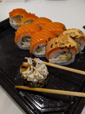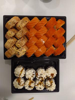 - Промокод дает право на скидку до 59% на суши-сеты от "Юджын Крабс"