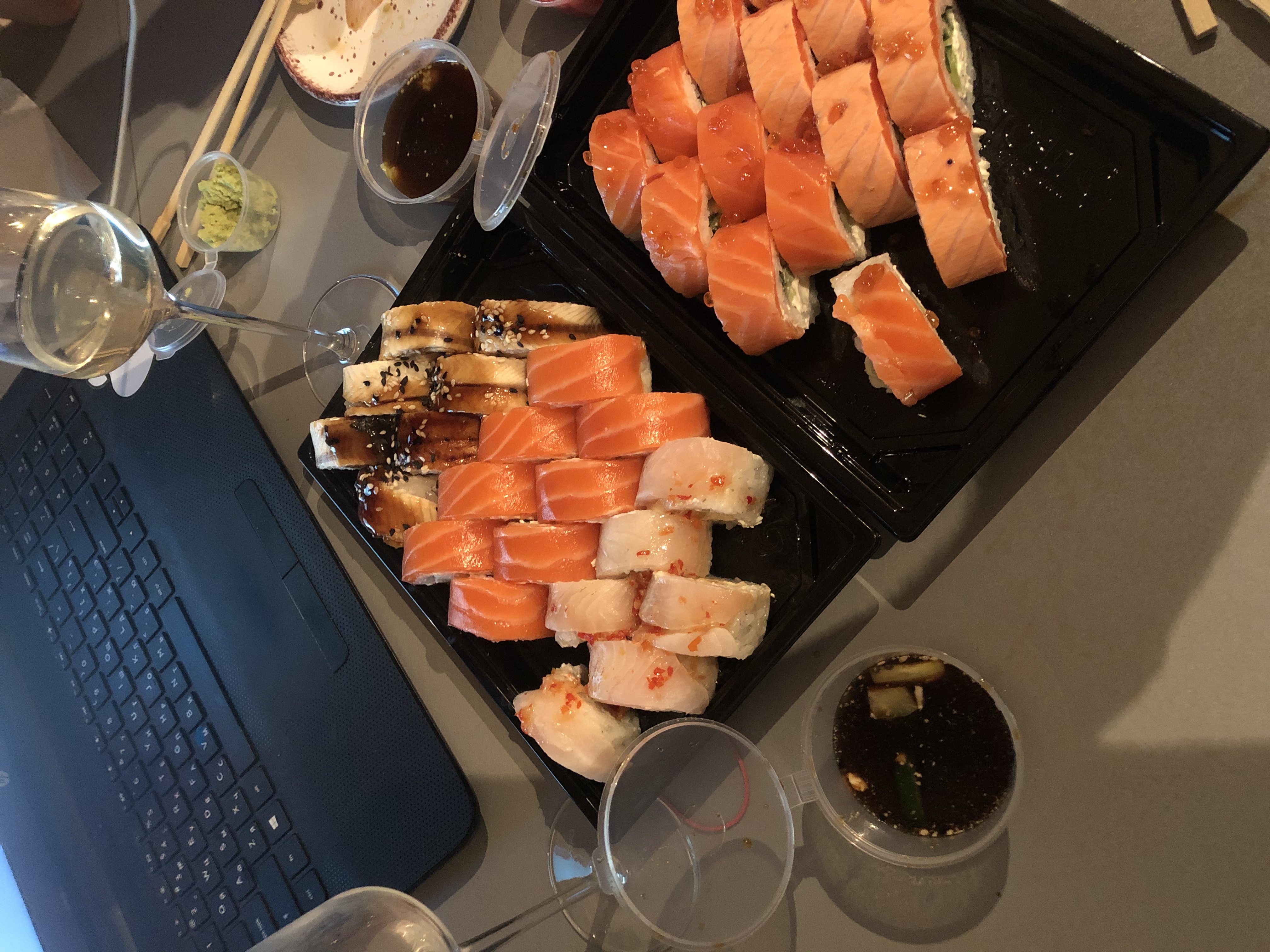 Спасибо сливкам за акции!  Аппетитные суши + пирожок, и готов отличный праздничный стол без хлопот 😄