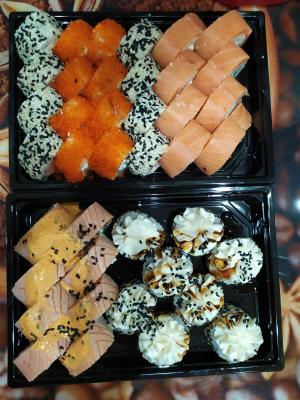 Не могу не оставить отзыв, я просто поражена качеством, вкусом ваших суши, в самом приятном шоке и удивлении !!! Заказывала первый раз, на праздничный стол,ориентировалась исключительно на отзывы, но и цена приятная. Все оказалось правда, фото не выставляю только потому, что все было также добротно и красиво, как на предыдущих фото в отзывах. Наши два сета (сет №4 и большой куш) оказались просто огромными, их оказалось много, хотя у нас все любители суши и обычно все съедается за раз! Роллы большие, плотные, все на высоте! В общем и целом вы удивили неимоверно, спасибо вам за вкус, качество и отношение к работе!!! Будем вашими клиентами с удовольствием!