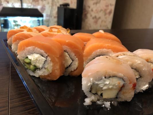 Последний раз суши были уже не очень... Пресноватые и рис водянистый. Может зависит от повара. Неоднозначное мнение сейчас....