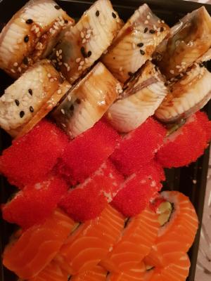 Заказывали сет Топ. Просто потрясающе!!! Спасибо!!! Толстенные куски лосося и окуня!! Ещё бы угорь такой же толщины...😄😄😄 Заказываем не первый раз, ничего не меняется, по-прежнему самые вкусные суши!!! Молодцы!!! Процветания вам!