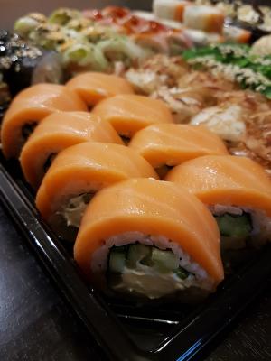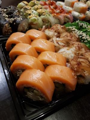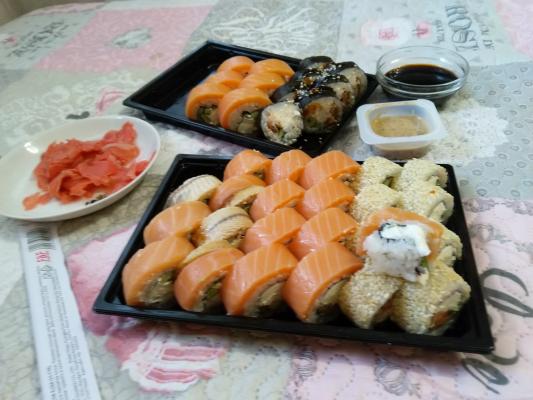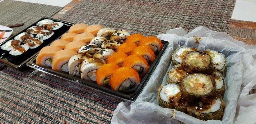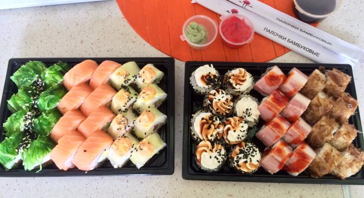 - Промокод дает право на скидку до 59% на суши-сеты от "Юджын Крабс"