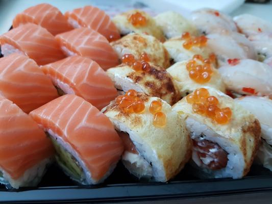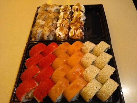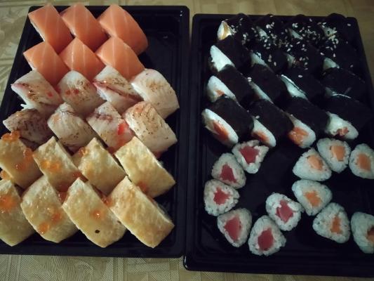 - Промокод дает право на скидку до 59% на суши-сеты от "Юджын Крабс"