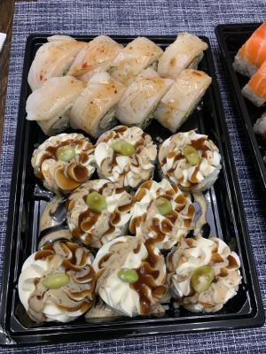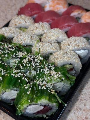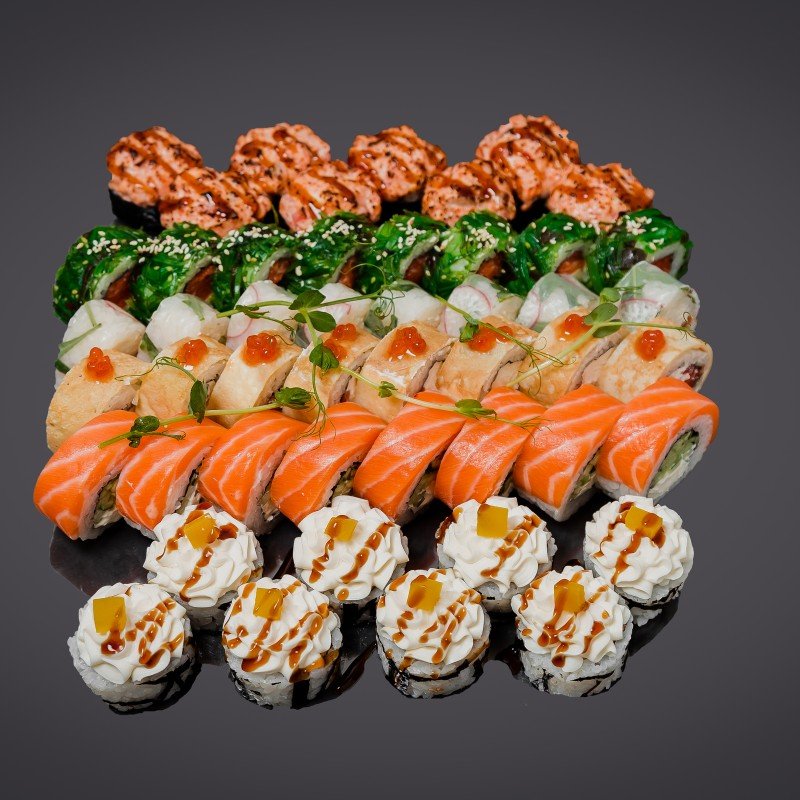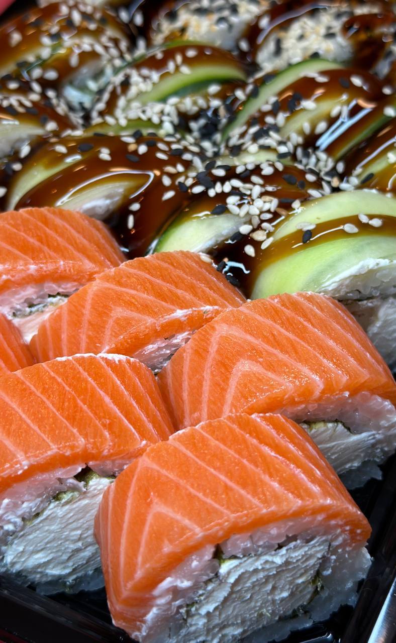 - Промокод дает право на скидку до 59% на суши-сеты от "Юджын Крабс"