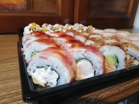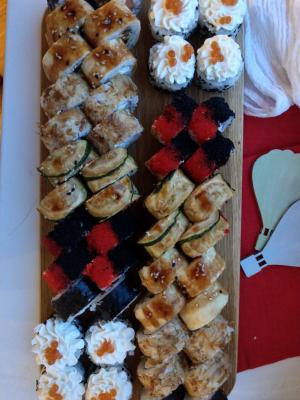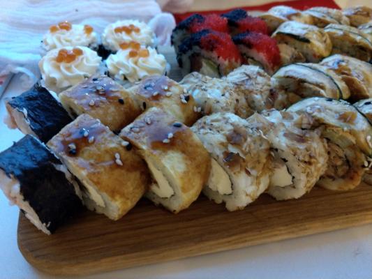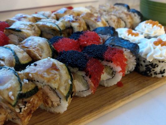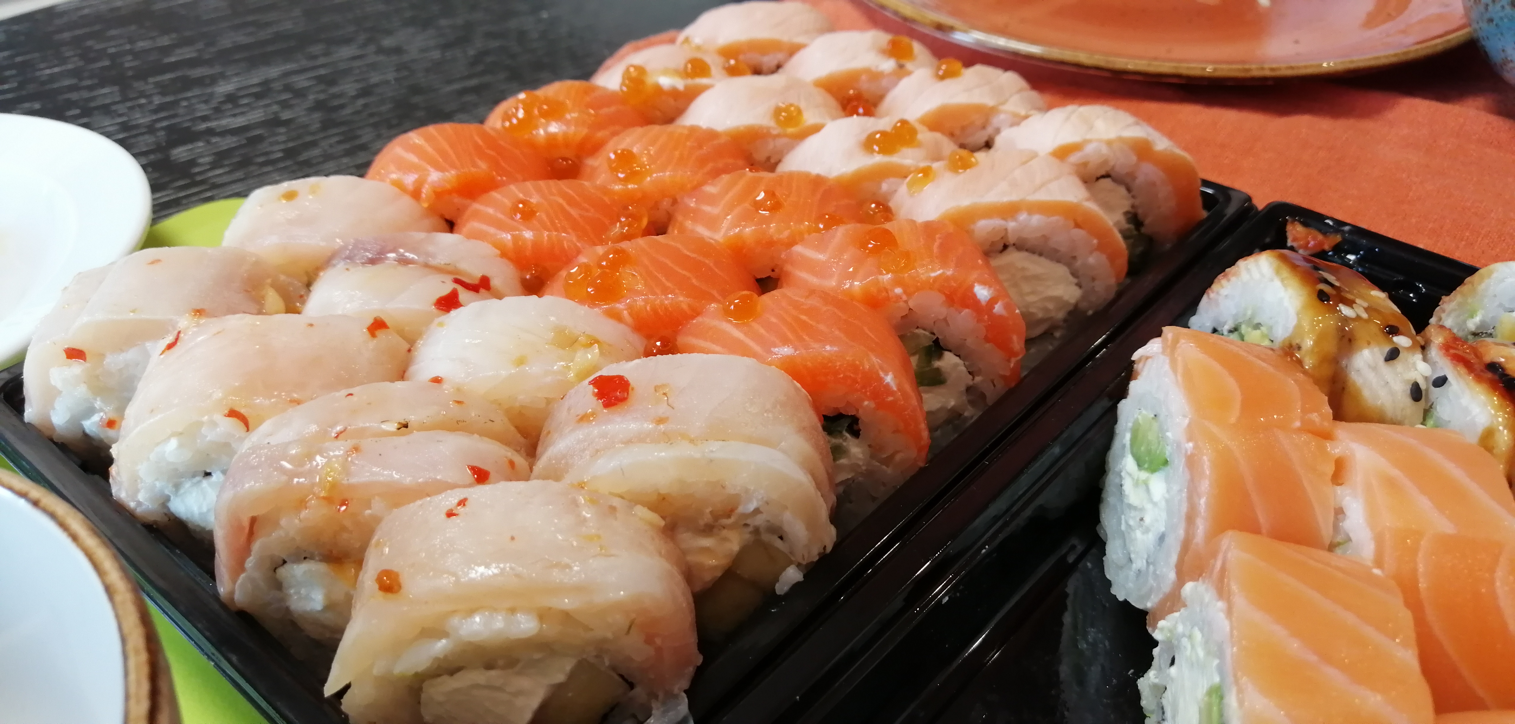 - Промокод дает право на скидку до 59% на суши-сеты от "Юджын Крабс"