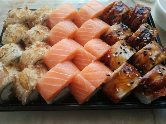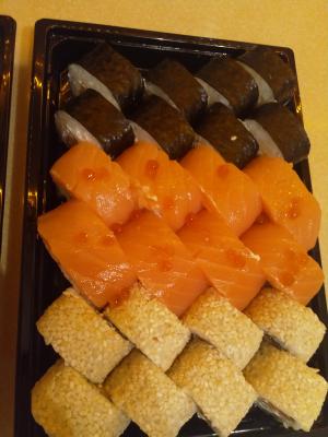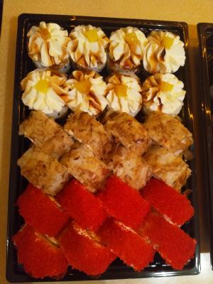 - Промокод дает право на скидку до 59% на суши-сеты от "Юджын Крабс"