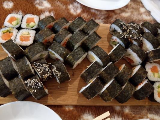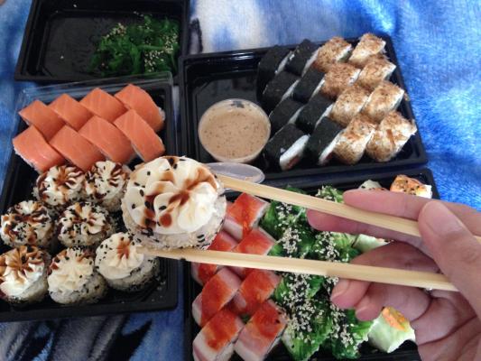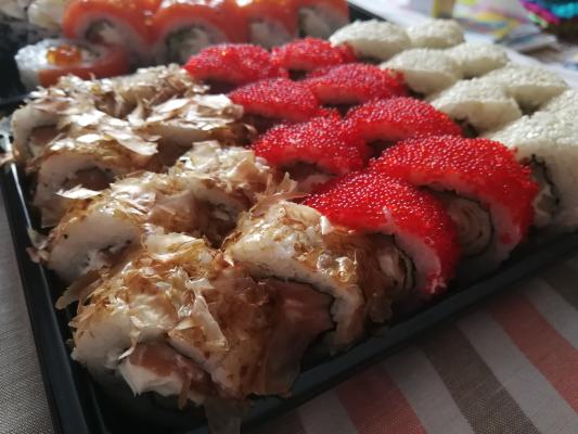 - Промокод дает право на скидку до 59% на суши-сеты от "Юджын Крабс"