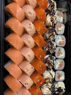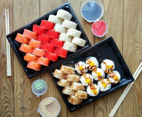 - Промокод дает право на скидку до 59% на суши-сеты от "Юджын Крабс"
