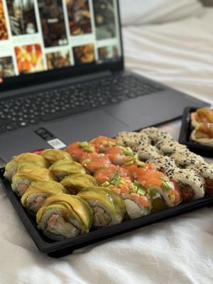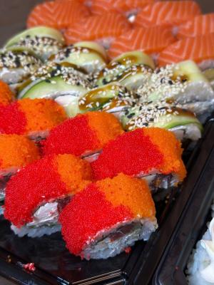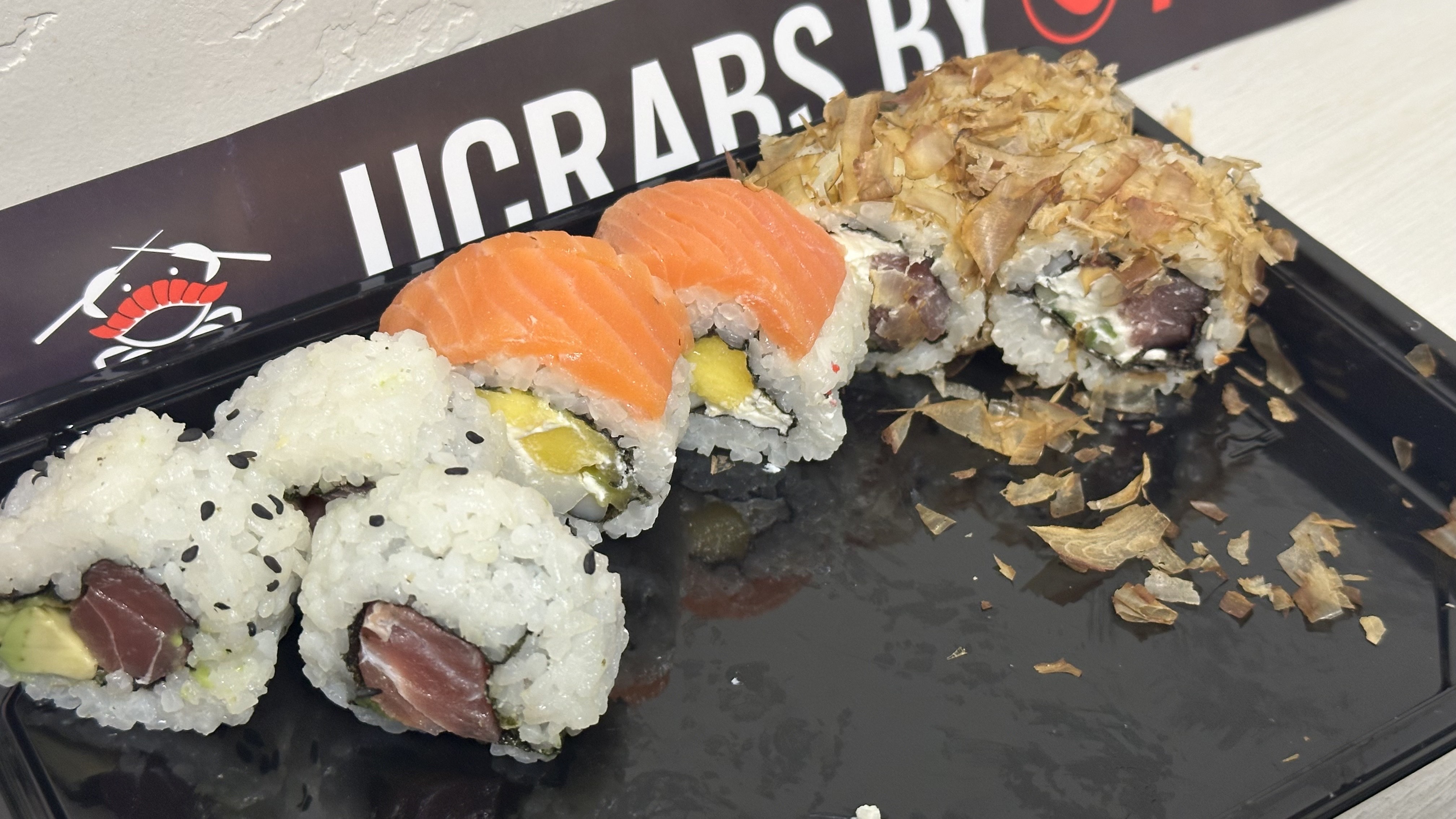 - Промокод дает право на скидку до 59% на суши-сеты от "Юджын Крабс"