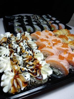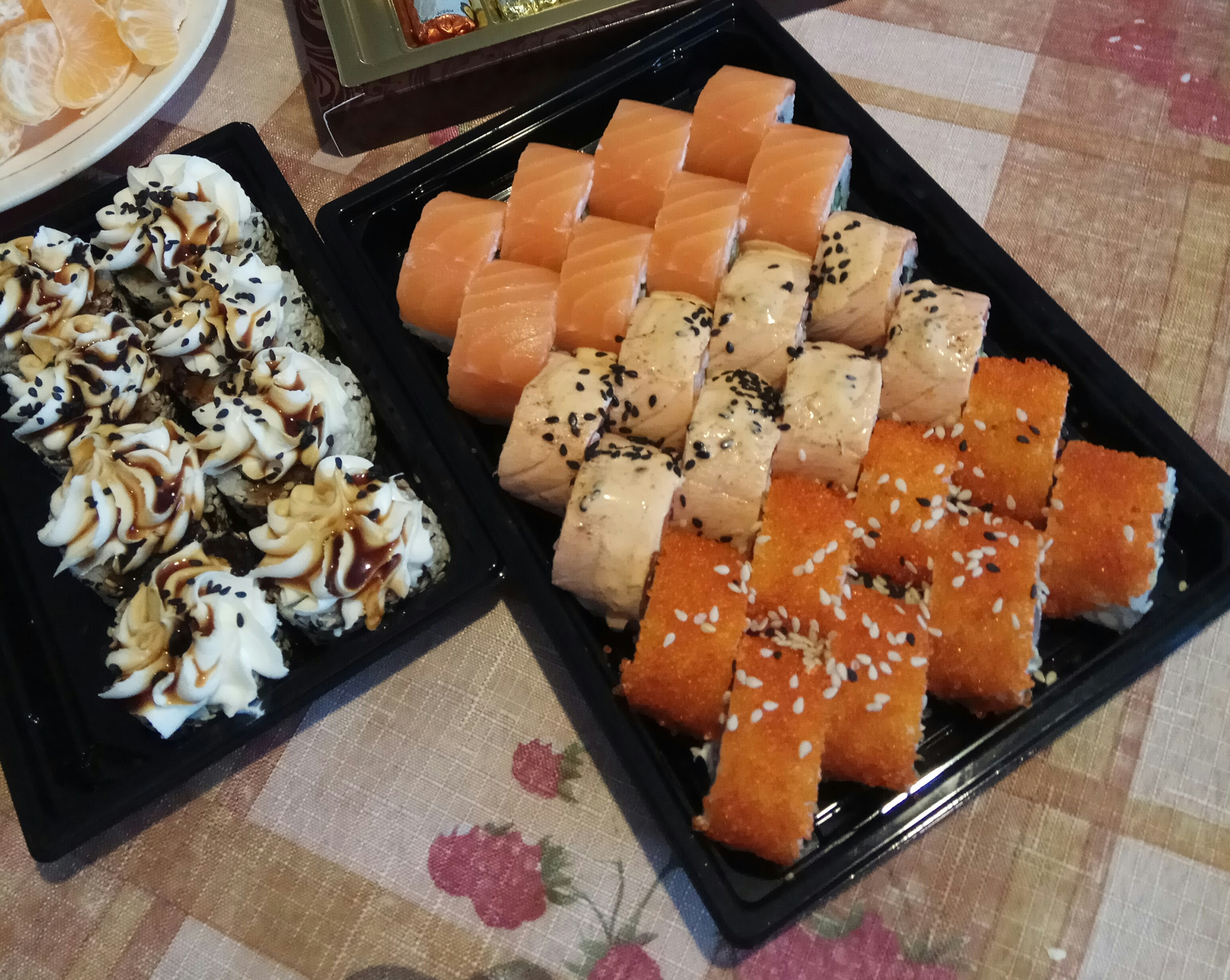 - Промокод дает право на скидку до 59% на суши-сеты от "Юджын Крабс"
