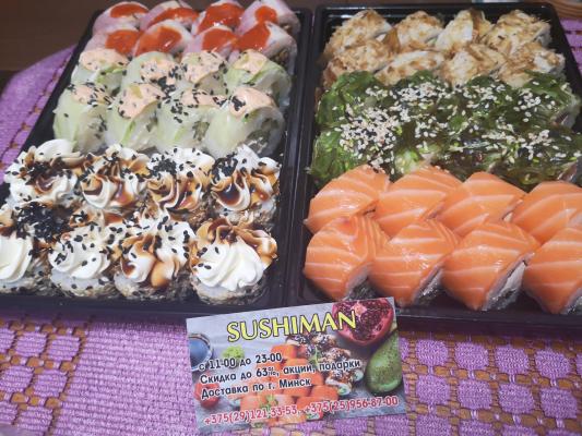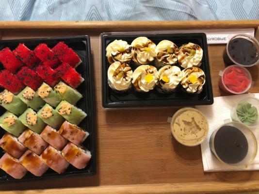 - Промокод дает право на скидку до 59% на суши-сеты от "Юджын Крабс"