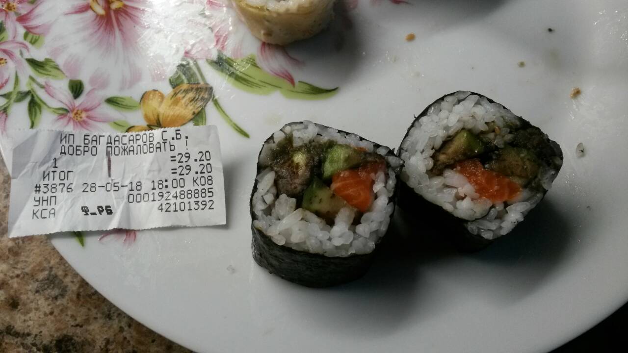 уровень хуже евроопта,лучше самому скрутить !!!состав не соответствует,рыбы как украли,листы нори самые дешевые ,стабильно гнилой авокадо , не советую!!