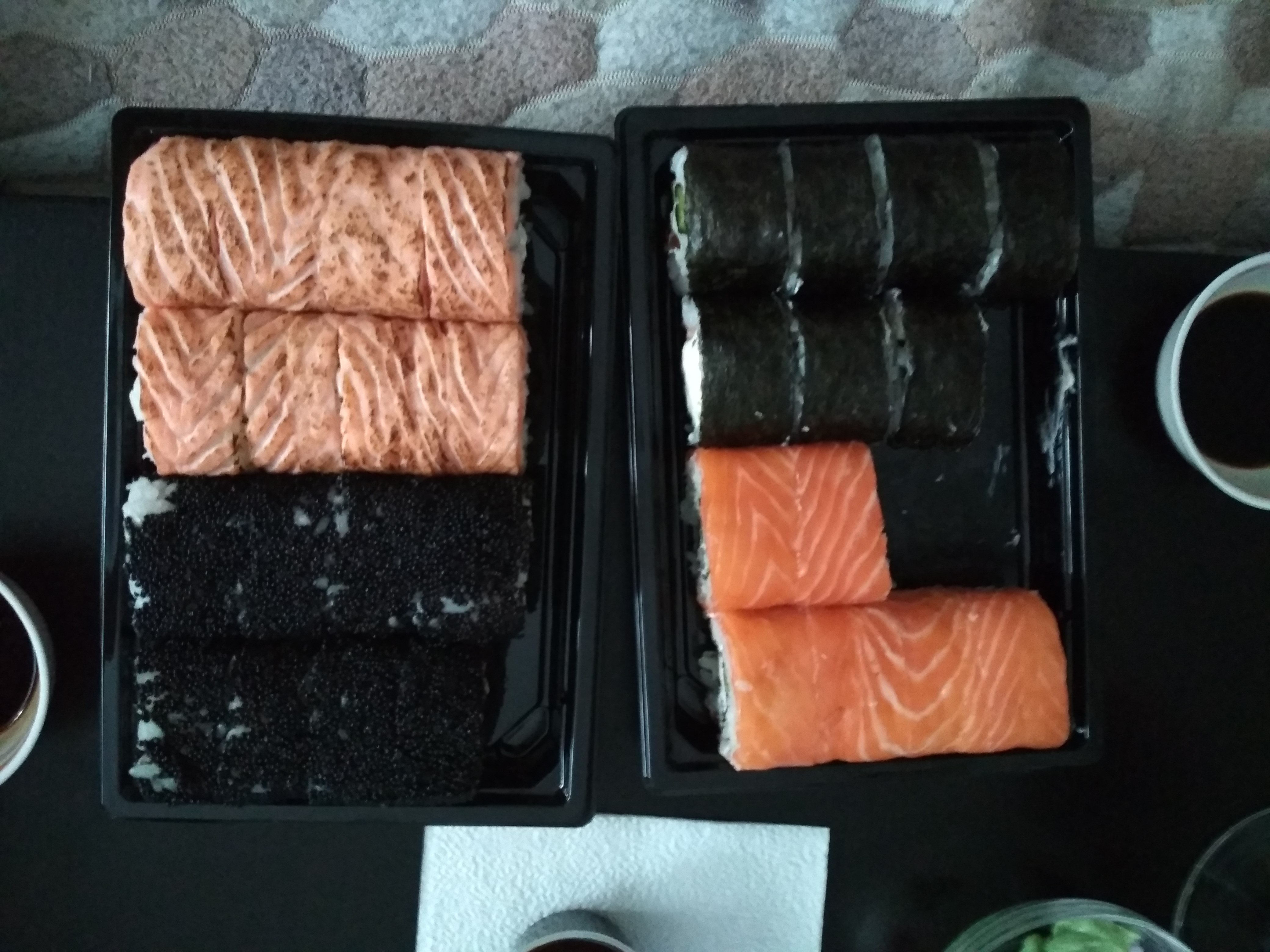 Заказывали шеф-сет с доставкой. В первую очередь хочу отметить, что заказ был на время 21:30-22:00, однако дома я оказалась раньше, позвонила и попросила доставить сет раньше времени, что и было сделано. Это безумно порадовало!