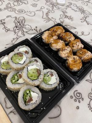 - Промокод дает право на скидку до 59% на суши-сеты от "Юджын Крабс"