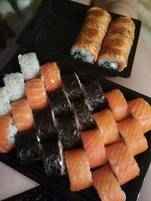 - Промокод дает право на скидку до 59% на суши-сеты от "Юджын Крабс"