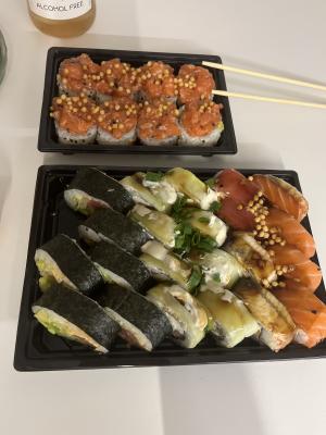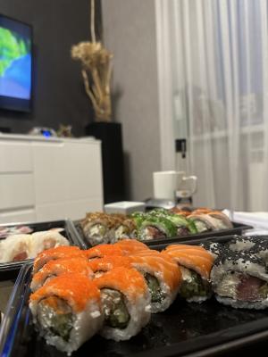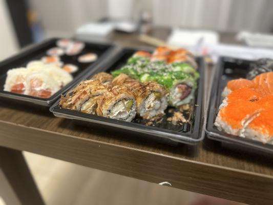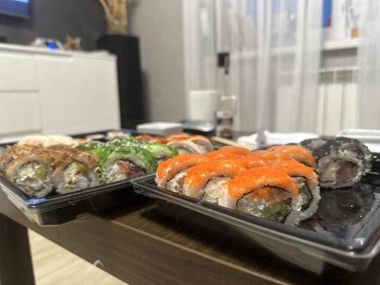- Промокод дает право на скидку до 59% на суши-сеты от "Юджын Крабс"