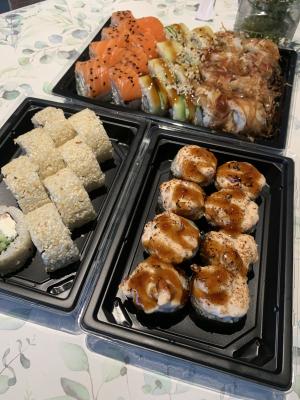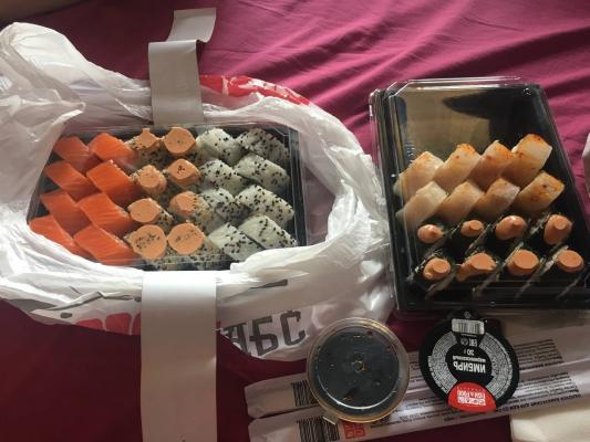 - Промокод дает право на скидку до 59% на суши-сеты от "Юджын Крабс"