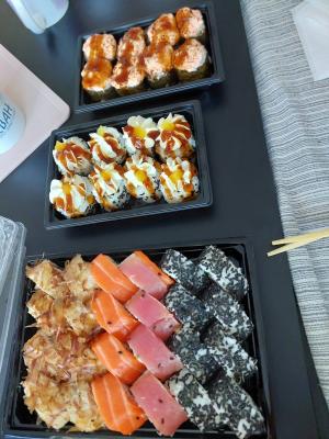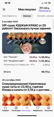 - Промокод дает право на скидку до 59% на суши-сеты от "Юджын Крабс"
