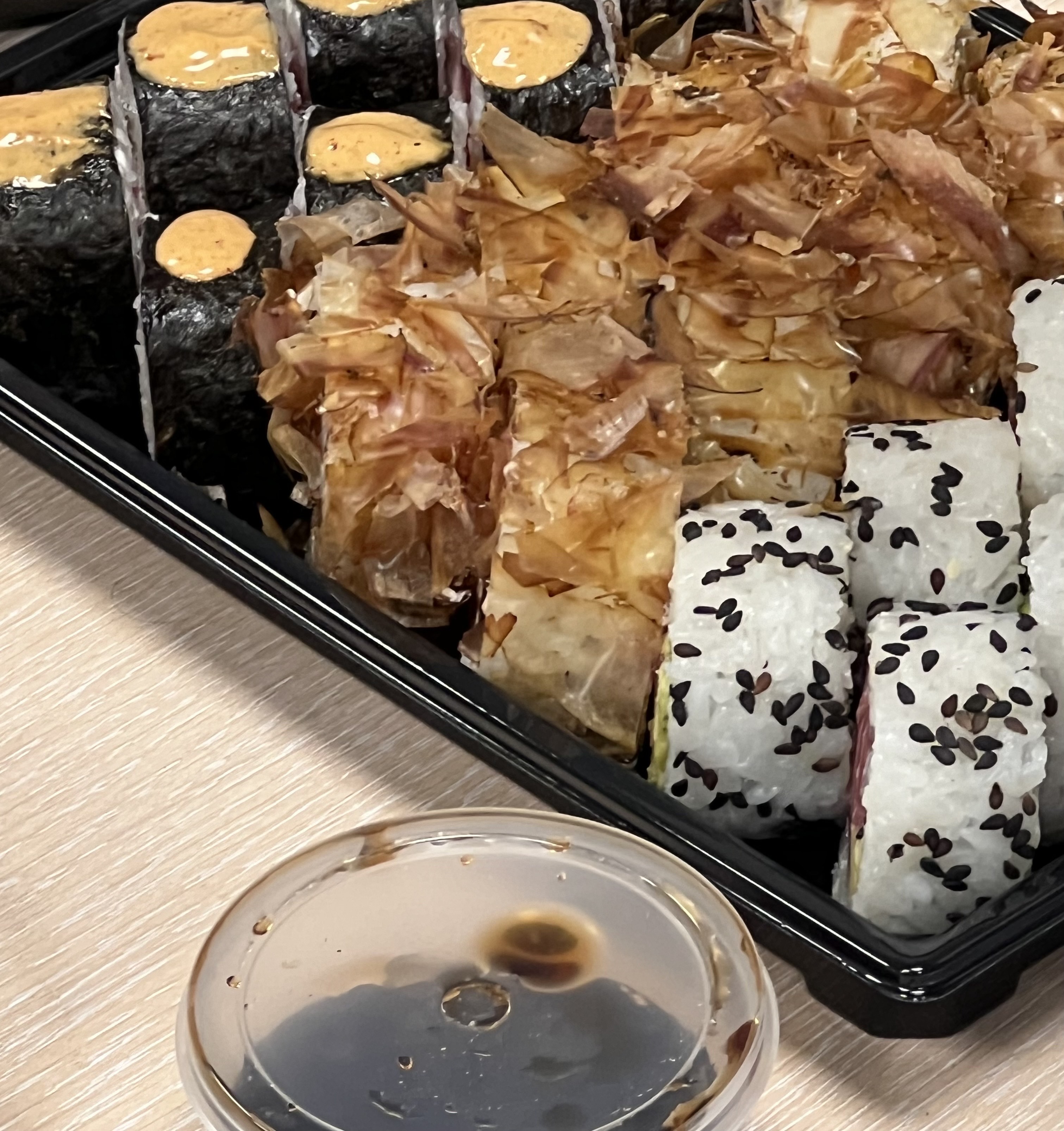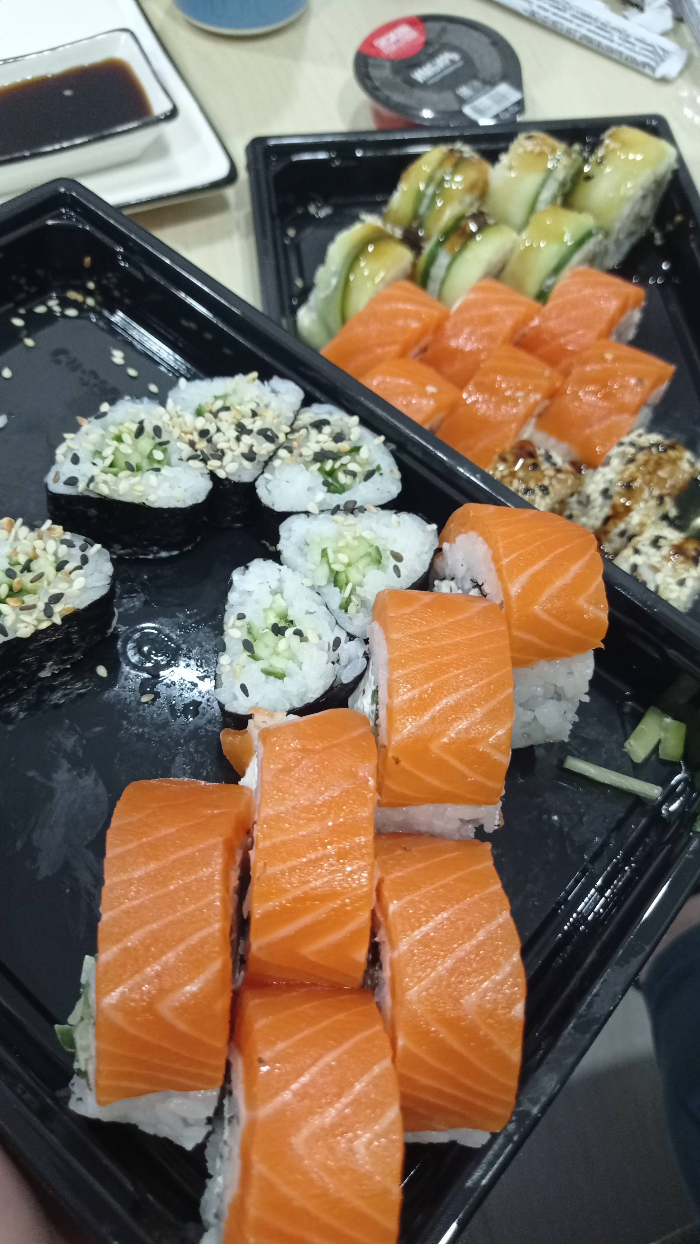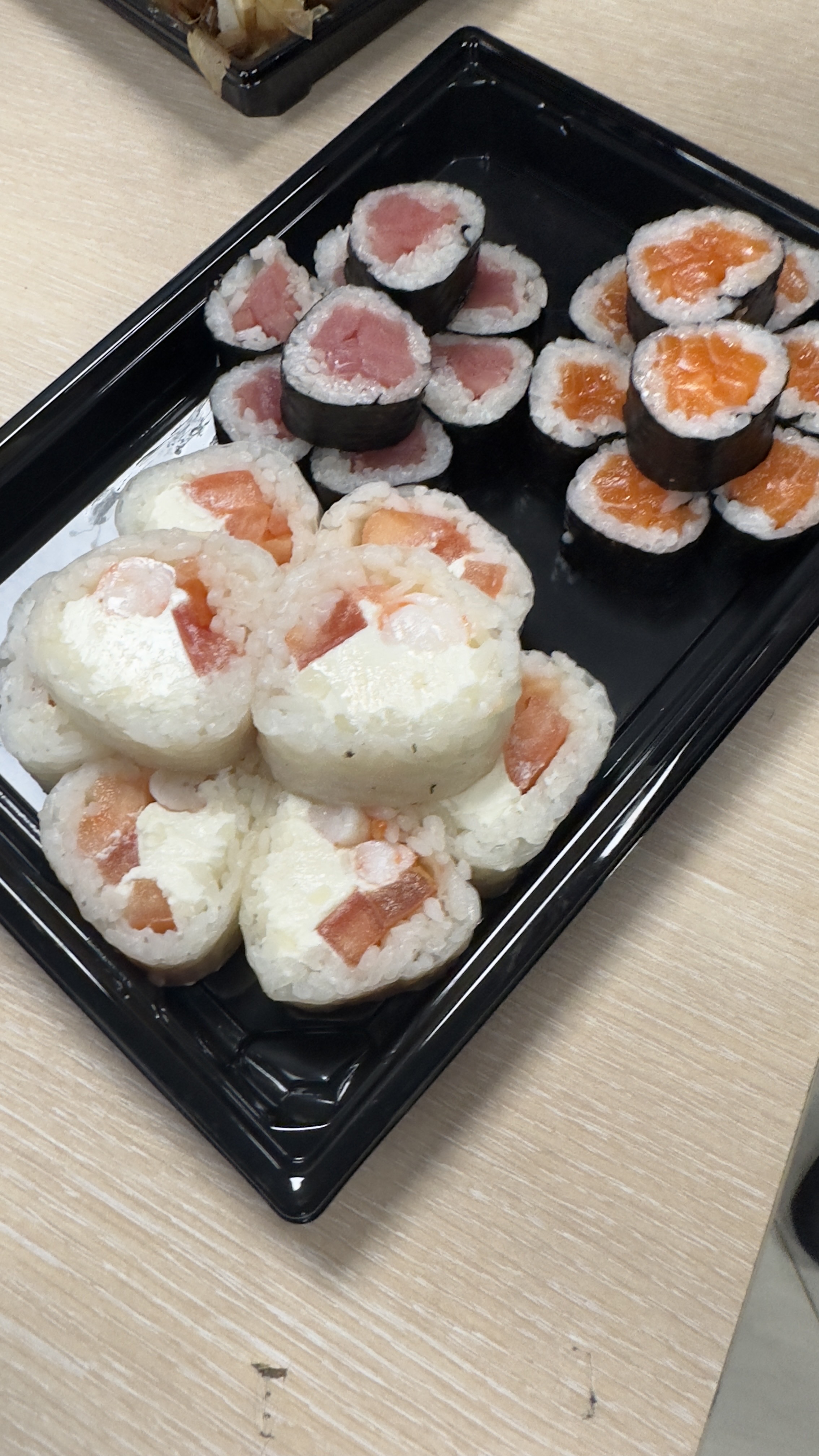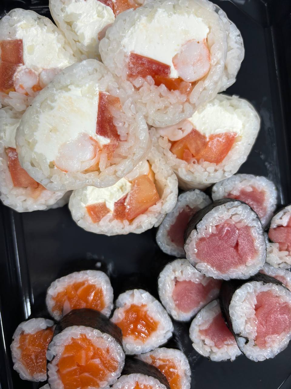 Суши были свежие вкусные по наполнению лучше чем показано на фото, гости чуть не подрались за креветку. Авокадо в суши было нежное маслянистое и его, как и тунца, было много. Не рекомендую брать, слишком понравится