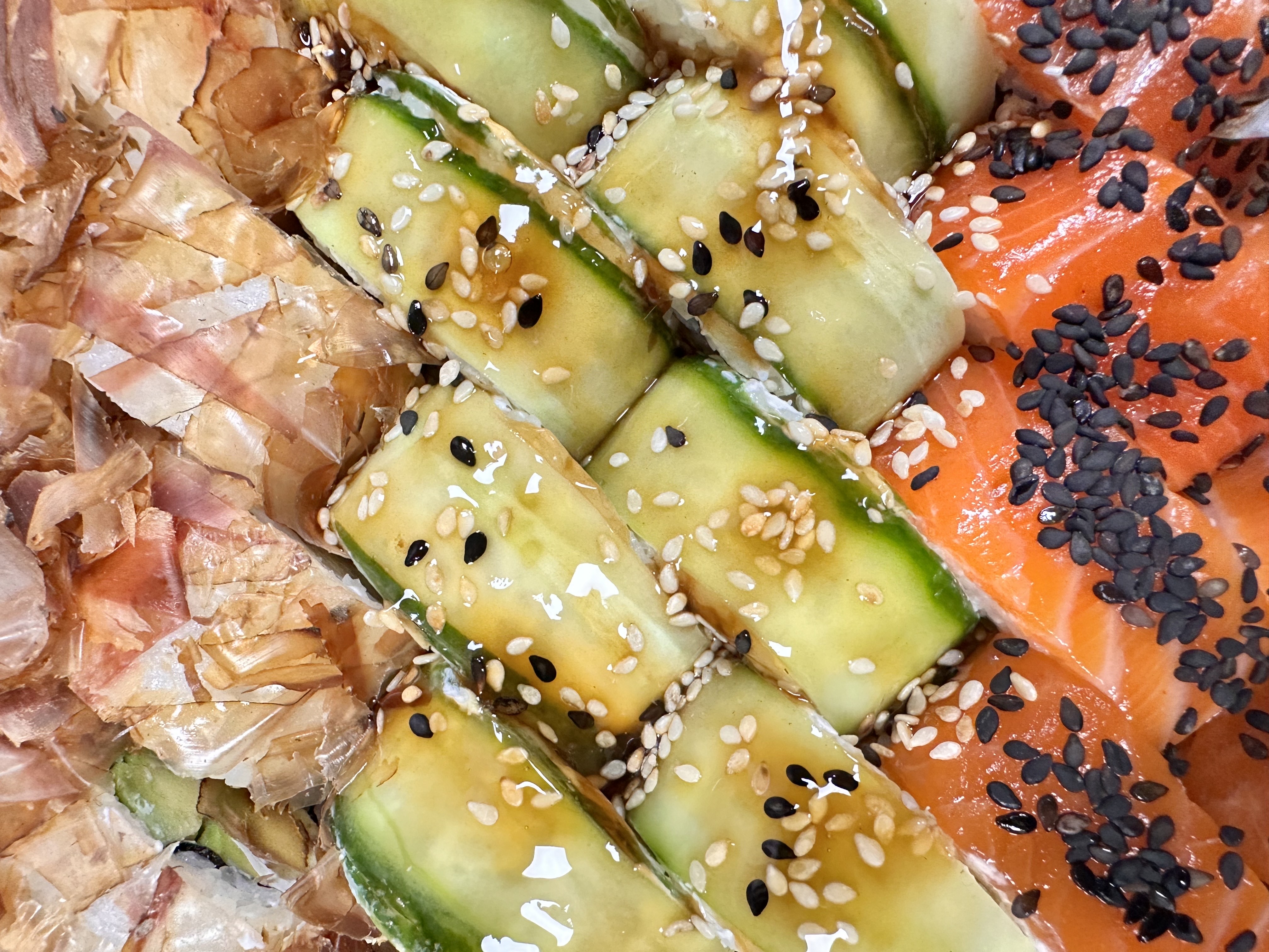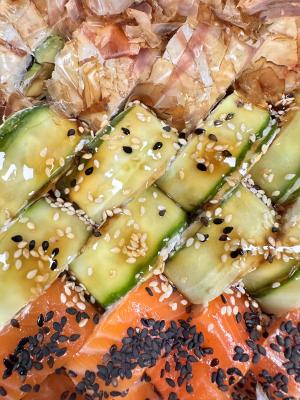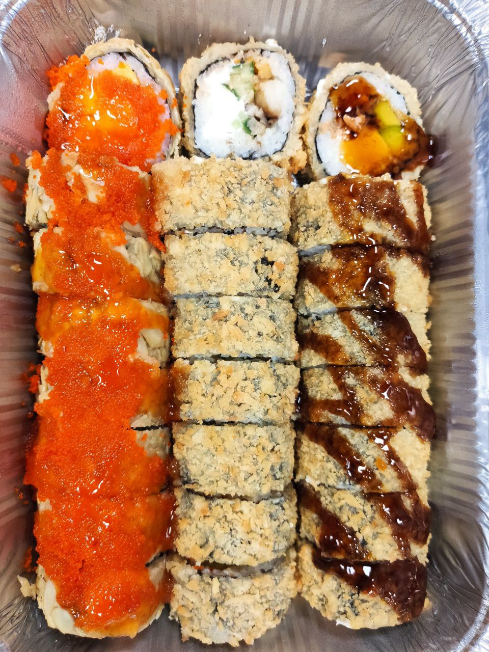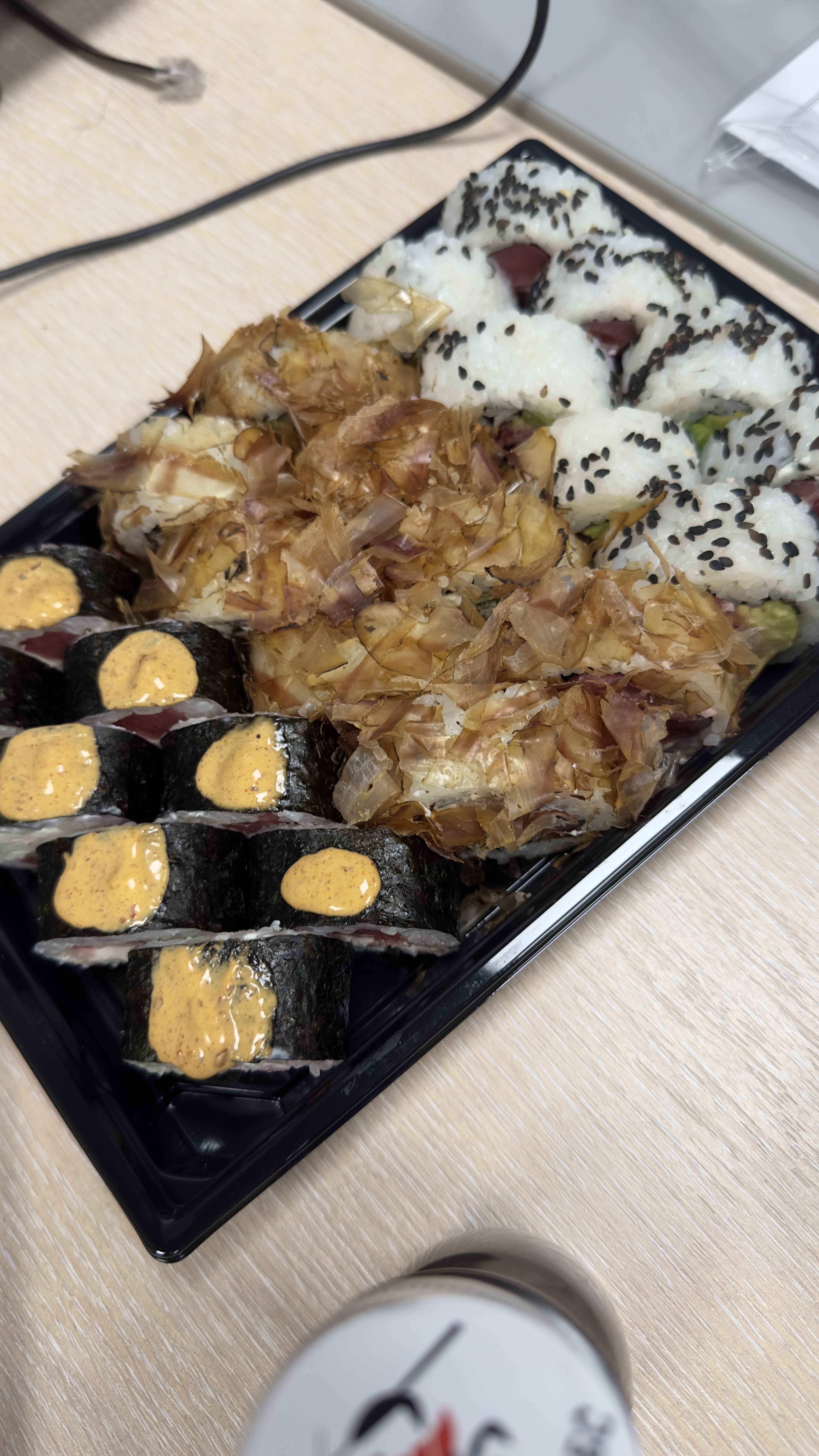 Суши были свежие вкусные по наполнению лучше чем показано на фото, гости чуть не подрались за креветку. Авокадо в суши было нежное маслянистое и его, как и тунца, было много. Не рекомендую брать, слишком понравится