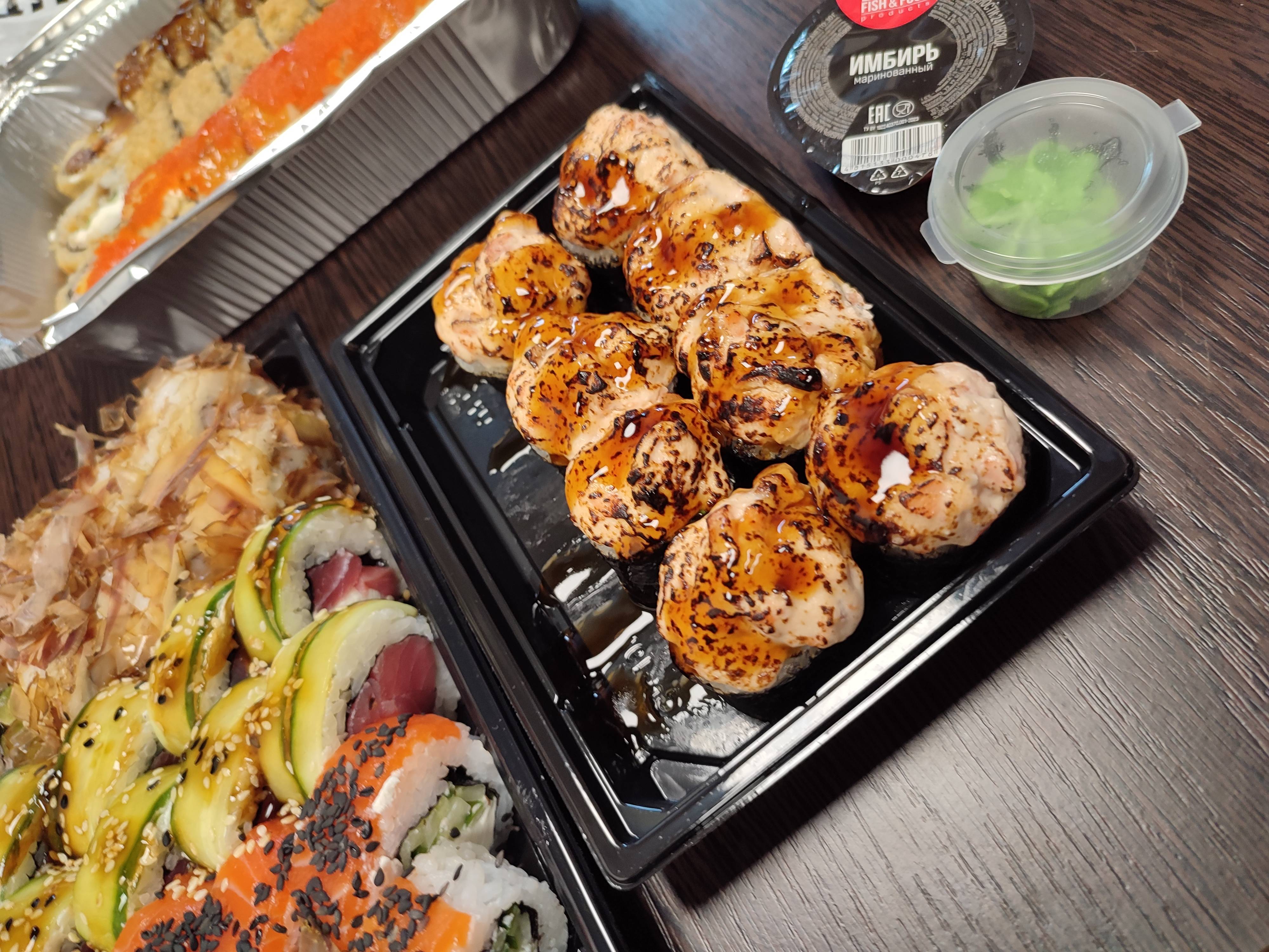 Особенно нравятся суши "Опаленный с лососем" - таких нигде не видел больше, чаще всего заказываю сет MIX, так как в нем есть они и сет сам очень вкусный.