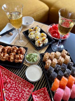- Промокод дает право на скидку до 59% на суши-сеты от "Юджын Крабс"