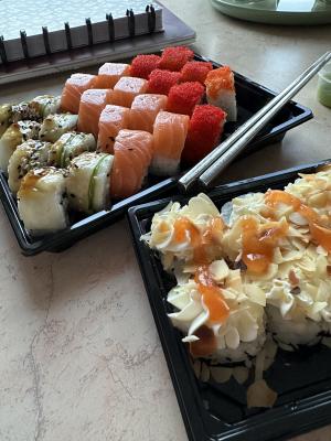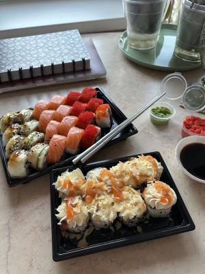 - Промокод дает право на скидку до 59% на суши-сеты от "Юджын Крабс"