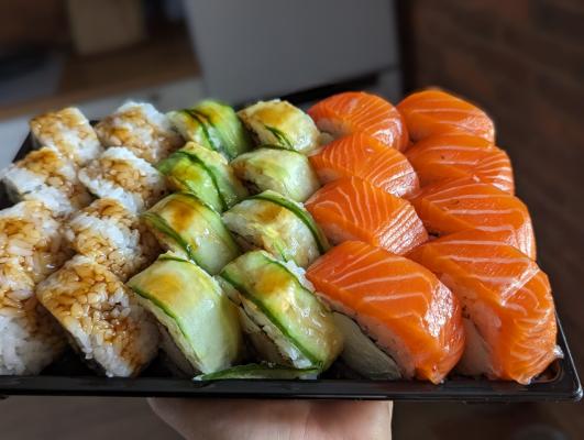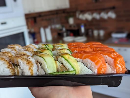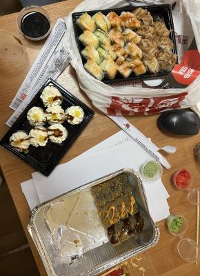 - Промокод дает право на скидку до 59% на суши-сеты от "Юджын Крабс"