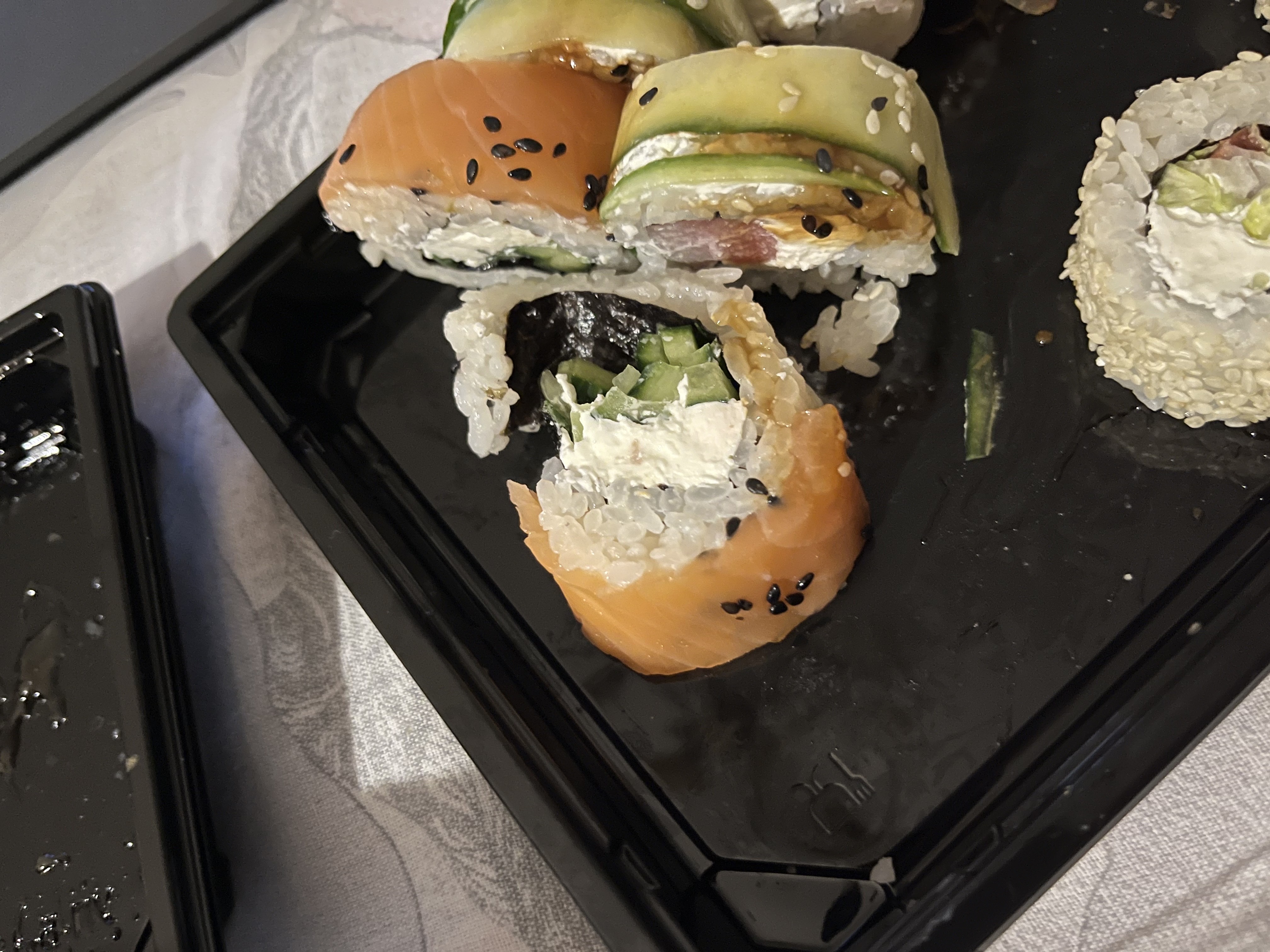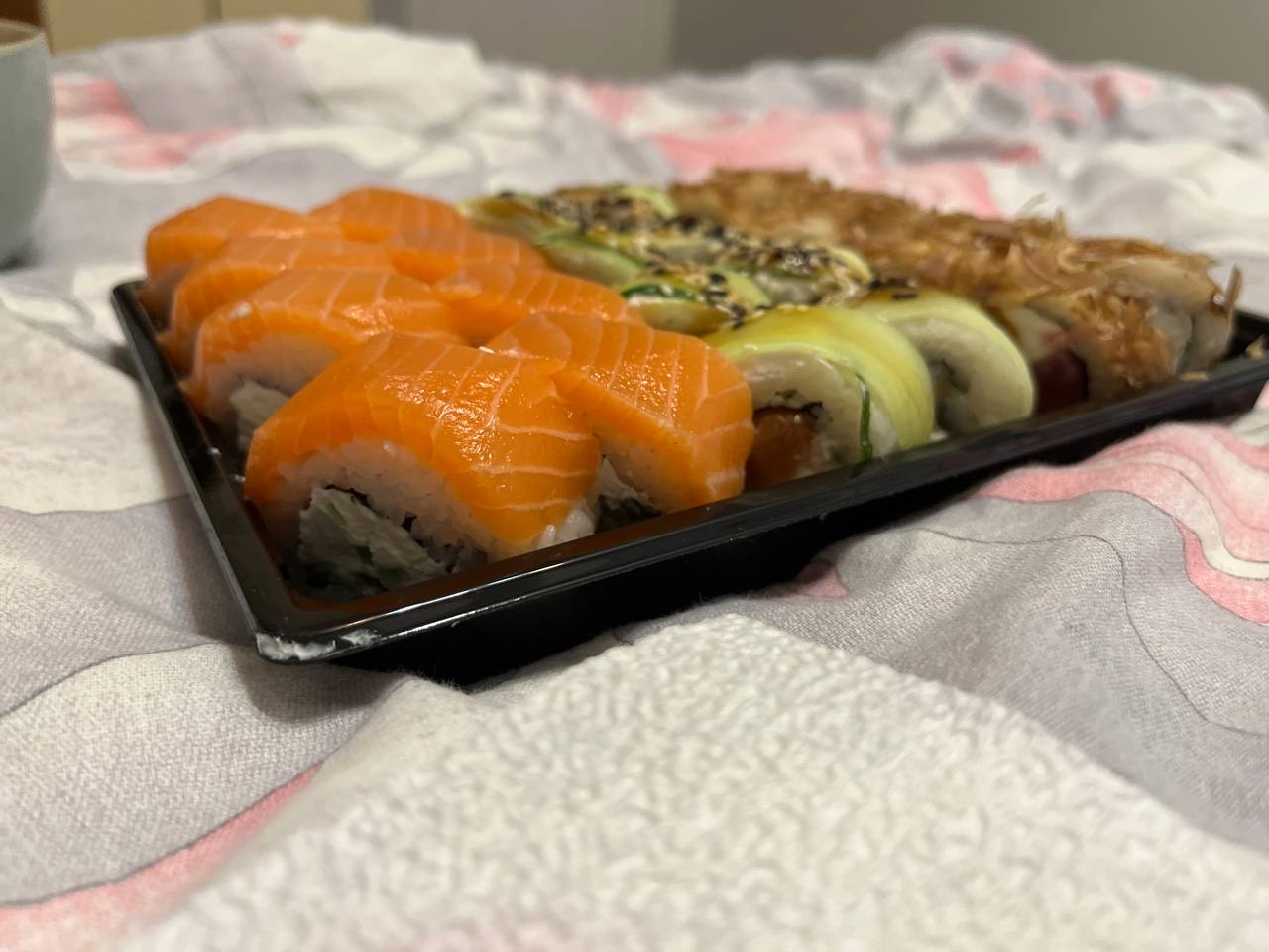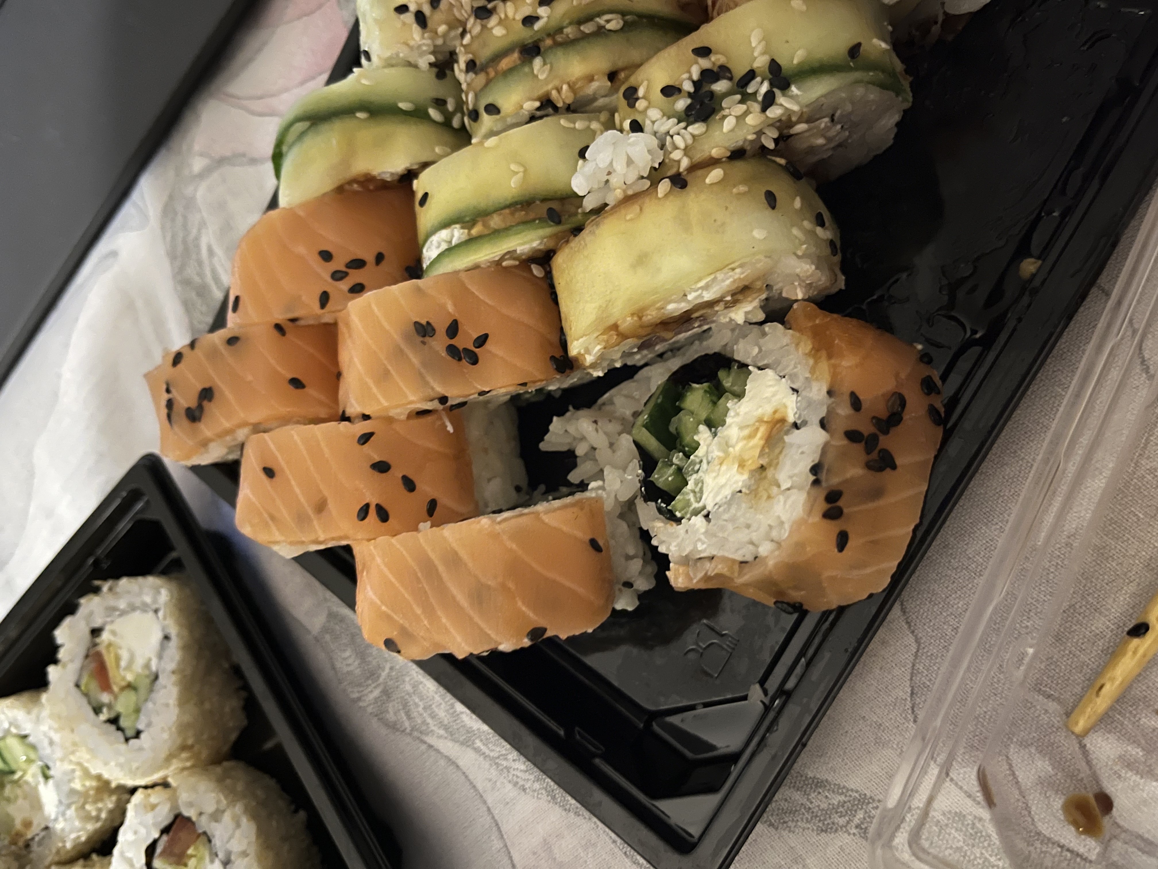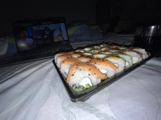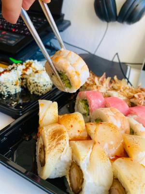 - Промокод дает право на скидку до 59% на суши-сеты от "Юджын Крабс"