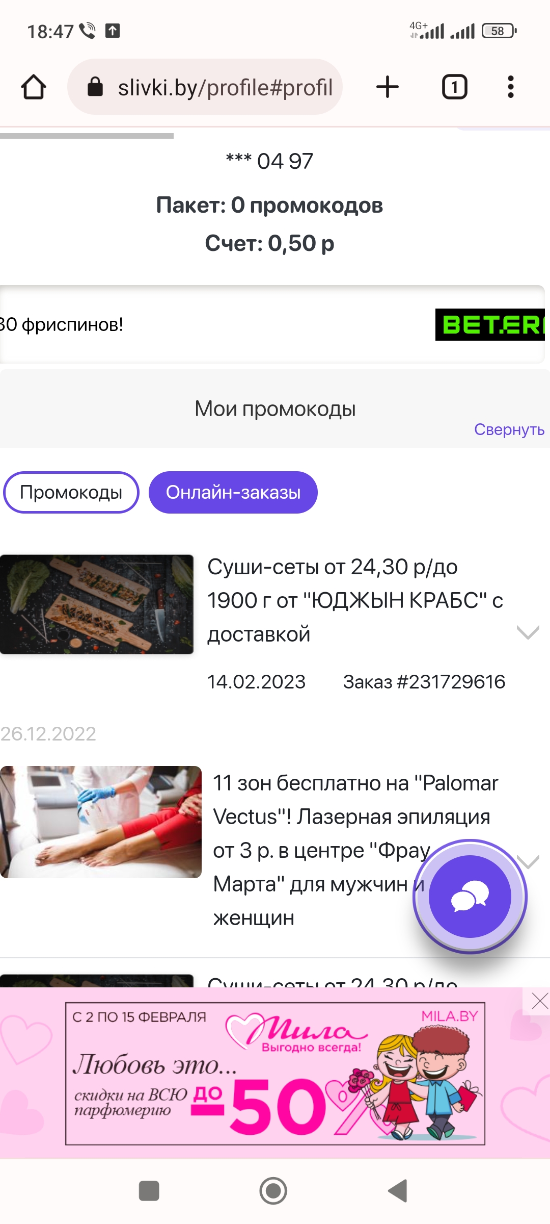 - *Промокоды от 19 коп. по подписке