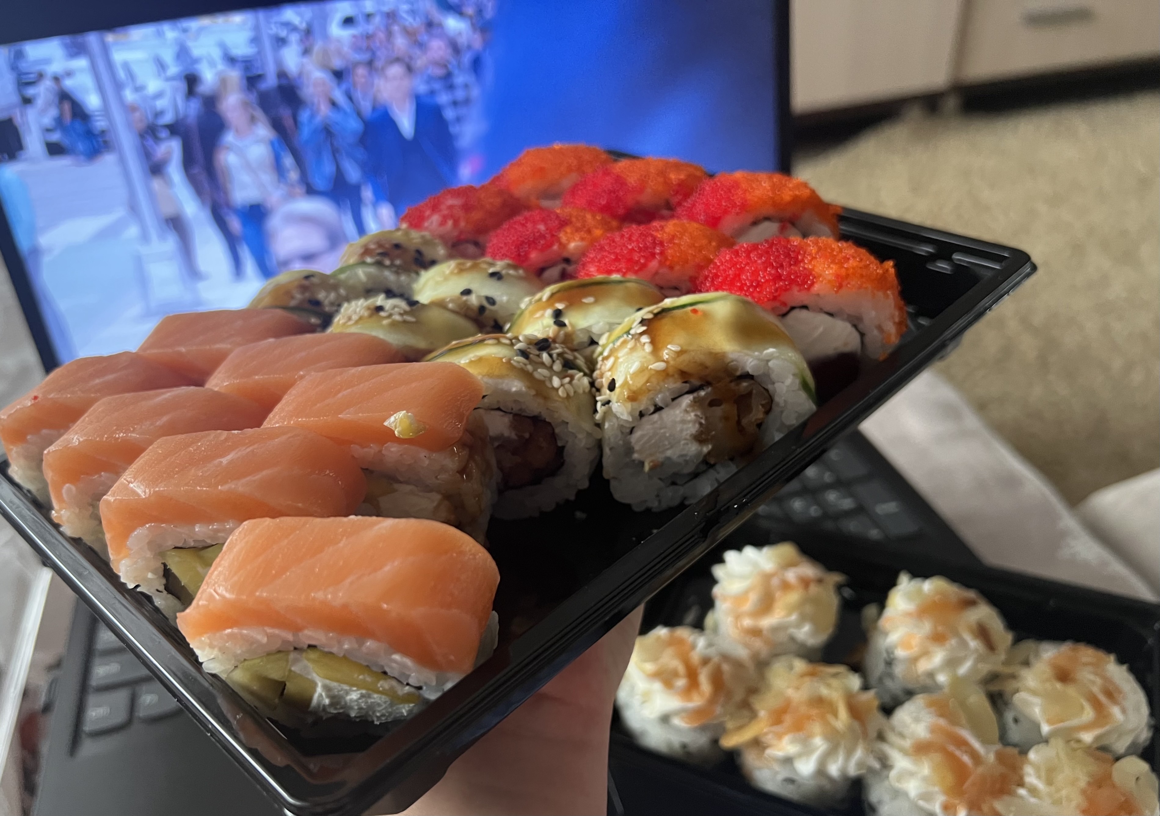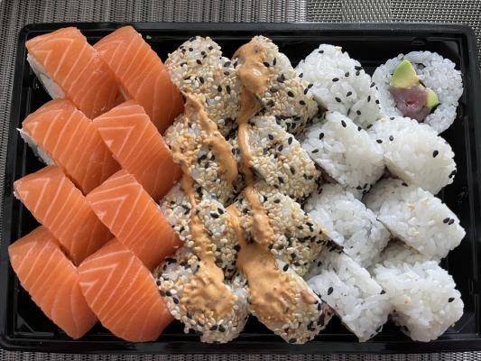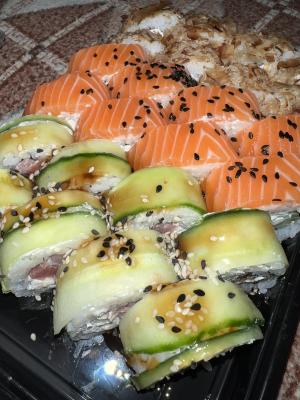 - Промокод дает право на скидку до 59% на суши-сеты от "Юджын Крабс"