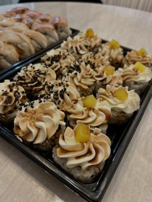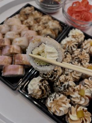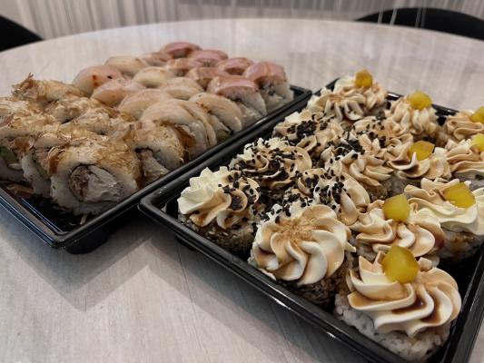 - Промокод дает право на скидку до 59% на суши-сеты от "Юджын Крабс"