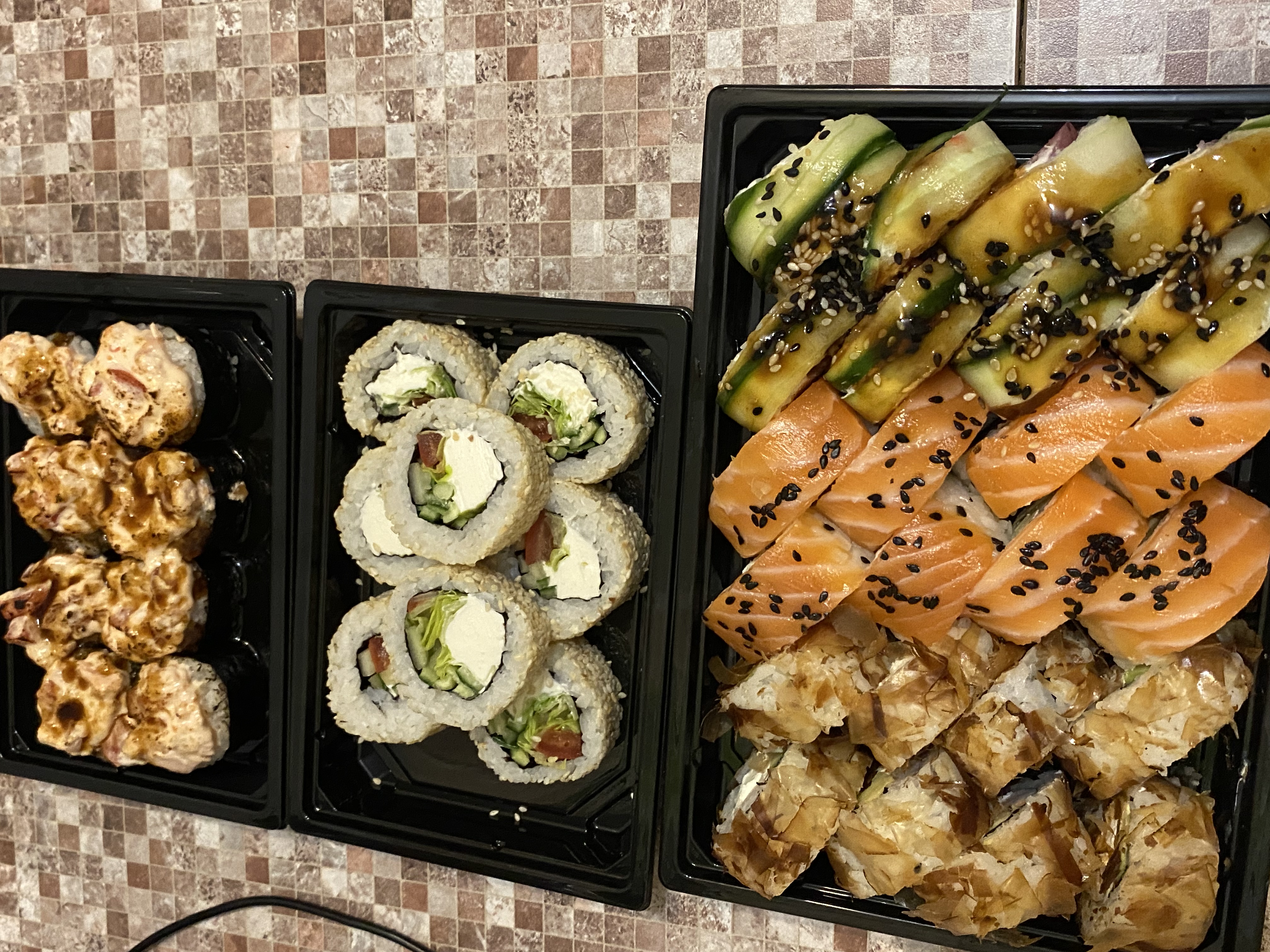 Постоянный клиент.  14.10.22  к праздничному ужину взял сеты Терияки и Вегас. По вкусу и свежести все как всегда на высоте!!! Много рыбы и начинки. И по внешнему виду просто огонь. Ничего не жалеют.