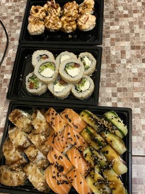 Очень вкусные роллы. Лучшие!!! Большие, много рыбы, много начинки. Привезли вовремя.